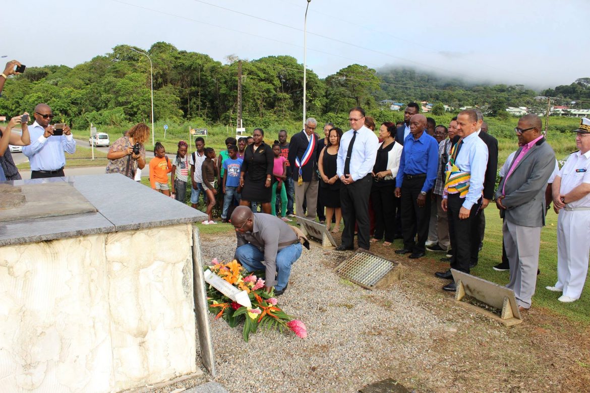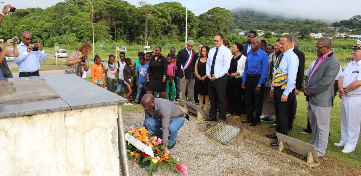 Proclamé par le Secrétaire d’Etat en charge des colonies, Victor Schoelcher, le 27 avril 1848, c’est seulement près de deux mois après, le 10 juin 1848 qu’était proclamé en Guyane le décret de l’abolition de l’esclavage. Afin de commémorer cette date, le Président de la Collectivité Territoriale de Guyane, Rodolphe Alexandre, s’est rendu aux cotés du Préfet de Région, Martin Jaeger, des parlementaires Chantal Berthelot et Gabriel Serville, des Capitaines de l’Ouest guyanais et d’élus du Territoire, au pied de la statue des Marrons de la Liberté au rond point Adelaide Tablon.