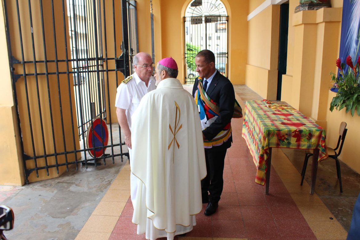 Après un dépôt de Gerbes solennel et empli d’émotion, le cortège s’est rendu à la cathédrale Saint-Sauveur de Cayenne où il a été accueilli par Monseigneur Laffont pour une cérémonie de recueillement.