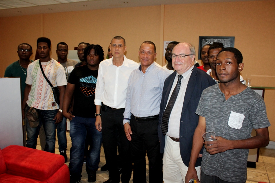 Ce jeudi 5 janvier, avant leur départ, le Président de la CTG, Rodolphe Alexandre, son 12 ème Vice-Président Claude Plénet, délégué à l’Education, l’Apprentissage et Formation professionnelle et le Préfet, Martin Jaeger ont échangé et discuté avec ces futurs stagiaires durant l’attente en salle d’embarquement. Cette formation (niveau V) se déroulera du 9 janvier au 17 mai 2017 à Aurillac. La CTG qui s’est engagée à cofinancer cette formation innovante non dispensée en Guyane, intervient à hauteur de 70 000 euros, LADOM Guyane 79 000 euros et l’OPCA OPCALIA 49 000 euros. Cet accompagnement de la Collectivité Territoriale de Guyane s’inscrit dans son engagement pour la prévention du chômage chez les jeunes.