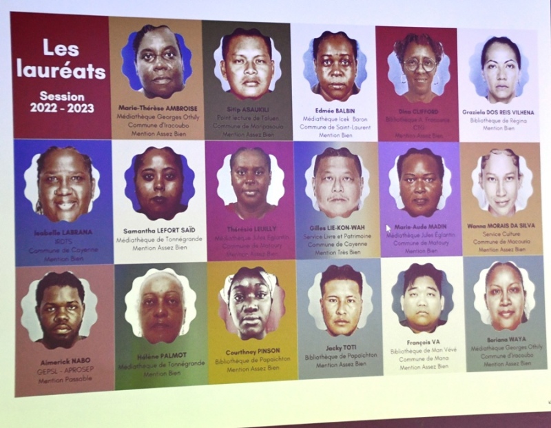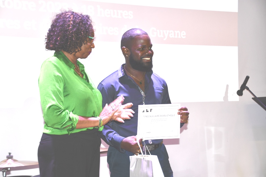 La Collectivité Territoriale de Guyane (CTG), par le biais de la Médiathèque Territoriale René Maran organisait le jeudi 19 octobre 2023, une cérémonie de remise officielle du diplôme d’Auxiliaire de Bibliothèque sous la présidence d’Annie Robinson-Chocho, 2ème Vice-présidente de la CTG, déléguée à l’Éducation et aux constructions scolaires, et en présence de Frédérique Racon, Directrice Générale de la Cohésion des Populations (DGCOPOP), d’Aurore Francius-Smith , Directrice Régionale du CNFPT de Guyane (Centre National de la Fonction Publique Territoriale de Guyane), de Synthia Sully, Présidente de l’Association des Bibliothécaires et Documentalistes de Guyane (ABDG) et de nombreux élus territoriaux, municipaux, et invités.