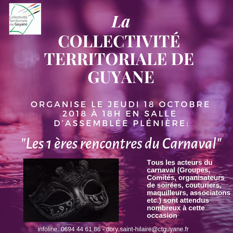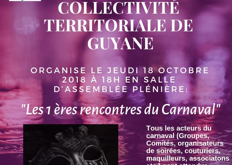 La Collectivité Territoriale de Guyane organise à votre attention, les 1ères rencontres du Carnaval, un temps d’échanges visant à lancer une réflexion concertée sur la structuration et l’impulsion d’une nouvelle dynamique pour ce moment incontournable de la vie culturelle du territoire.