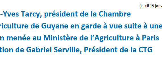 Jean-Yves Tarcy, président de la Chambre d’Agriculture de Guyane en garde à vue suite à une action menée au Ministère de l’Agriculture à Paris : Réaction de Gabriel Serville, Président de la CTG