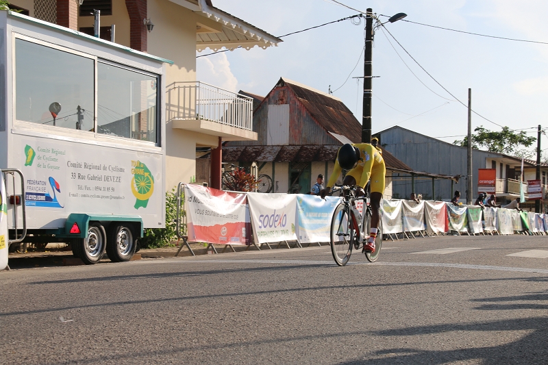 Le 2e tronçon du jour, soit le contre la montre, a été remporté par Cédric Locantin de la Guadeloupe réalisant un chrono de 17m 31s, devant Mathias Wiele de l’Allemagne et Loïc John de la Guyane.