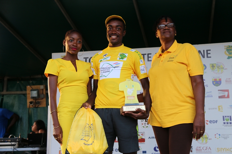 En fin de journée, c’est la Conseillère territoriale Céline Régis, qui a remis le maillot jaune au meilleur du classement général: Locantin Cédric de la Guadeloupe.
