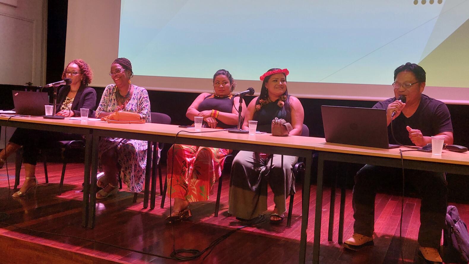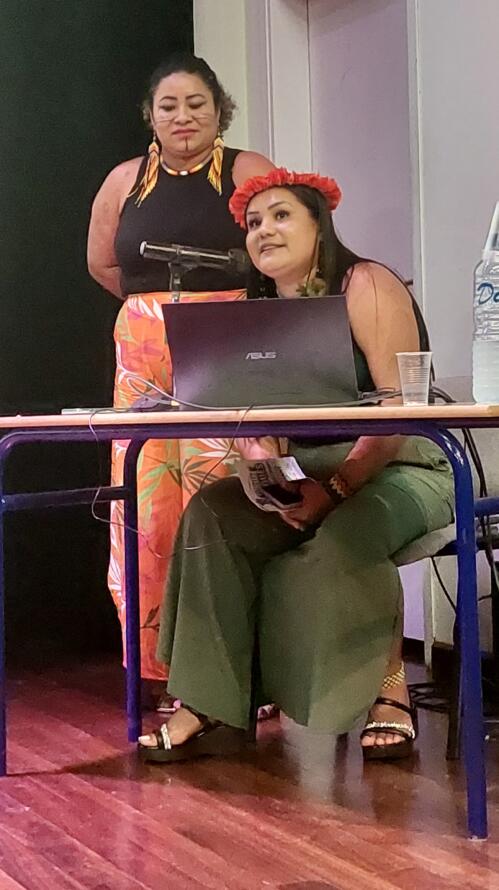 Orthographe et représentation : Janina DOS SANTOS FORTE (présidente de l’association des Femmes autochtones de Mutirao, AMIM) et Alcimara Anica DOS SANTOS (étudiante du cursus inter culturel autochtone et vice-coordinatrice de l’association autochtones du peuple Karipuna AIKA) ont discuté de la nouvelle orthographe pour le créole karipuna, soulignant l’évolution linguistique et culturelle.