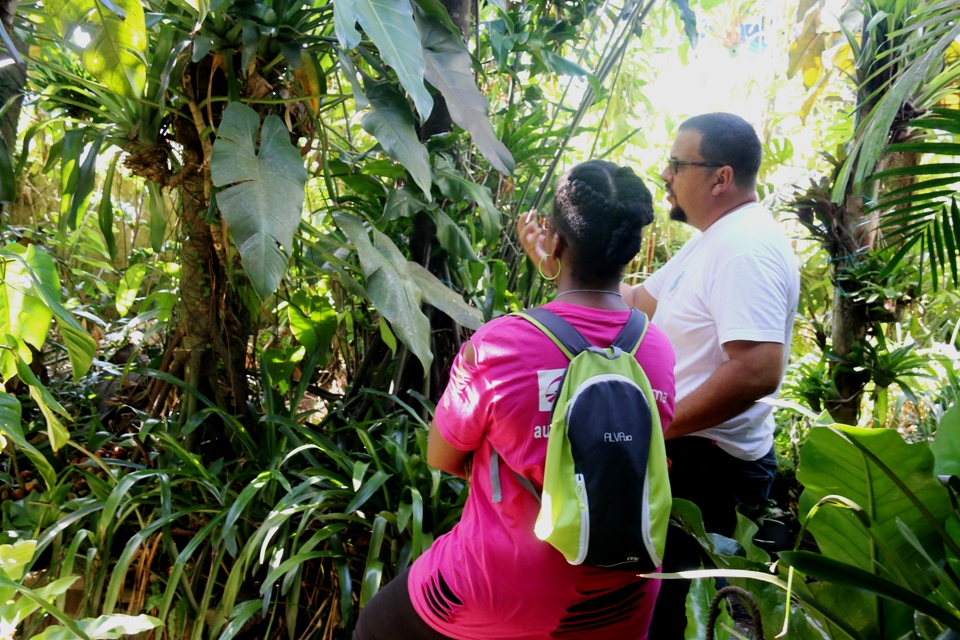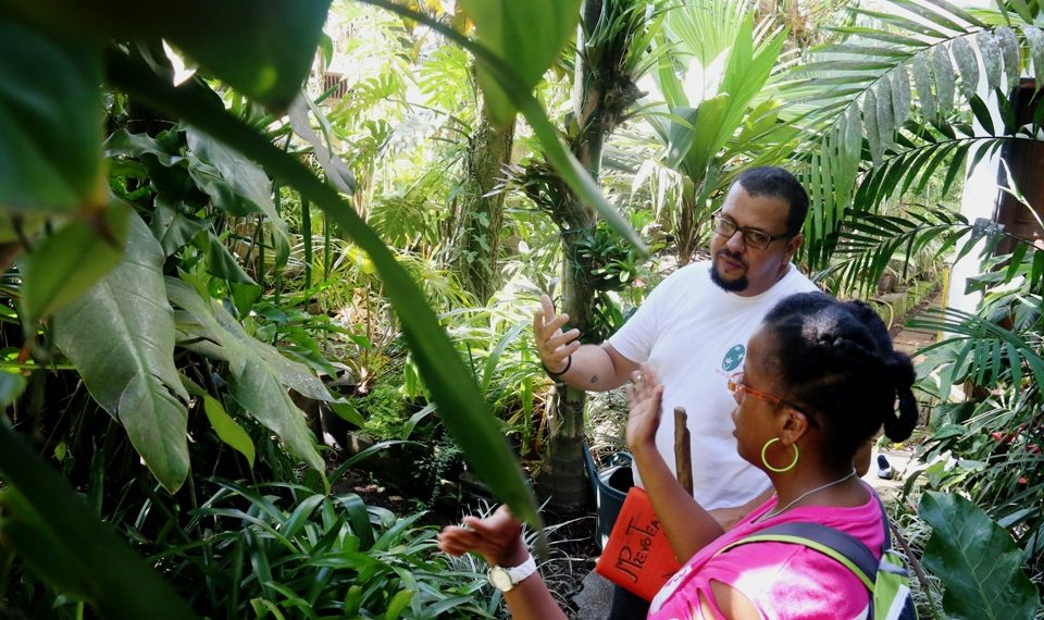 Ce lundi 8 octobre 2018, une visite guidée était proposée aux séniors afin de faire découvrir ce merveilleux jardin privé, d’une diversité exceptionnelle, dans la proche banlieue de Cayenne, appelé communément « Le Jardin de Ebajalé », qui compte à ce jour, pas moins de 88 espèces végétales répartis sur environ 1 000 m2, parmi lesquelles, des euphorbiacées, des broméliacées, des cactées, des héliconias…