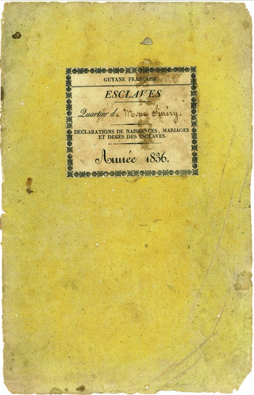 Le ministère des Colonies, par ordonnance royale du 4 septembre 1833, puis la colonie de la Guyane, par arrêté local du 6 novembre 1833, établissent l’état civil des esclaves.