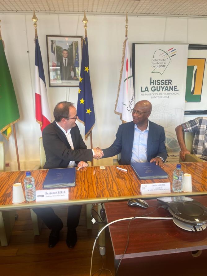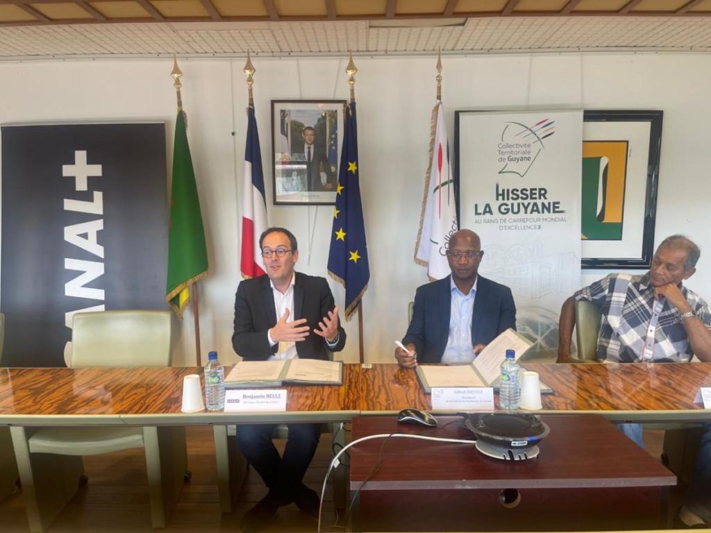Jeudi 27 octobre 2022, Gabriel Serville, président de la Collectivité Territoriale de Guyane(CTG) et Benjamin Belle, directeur général de Canal + Antilles et Guyane, ont officialisé par la signature d’un protocole d’accord, la mise en place d’un fonds de soutien à l’audiovisuel local.