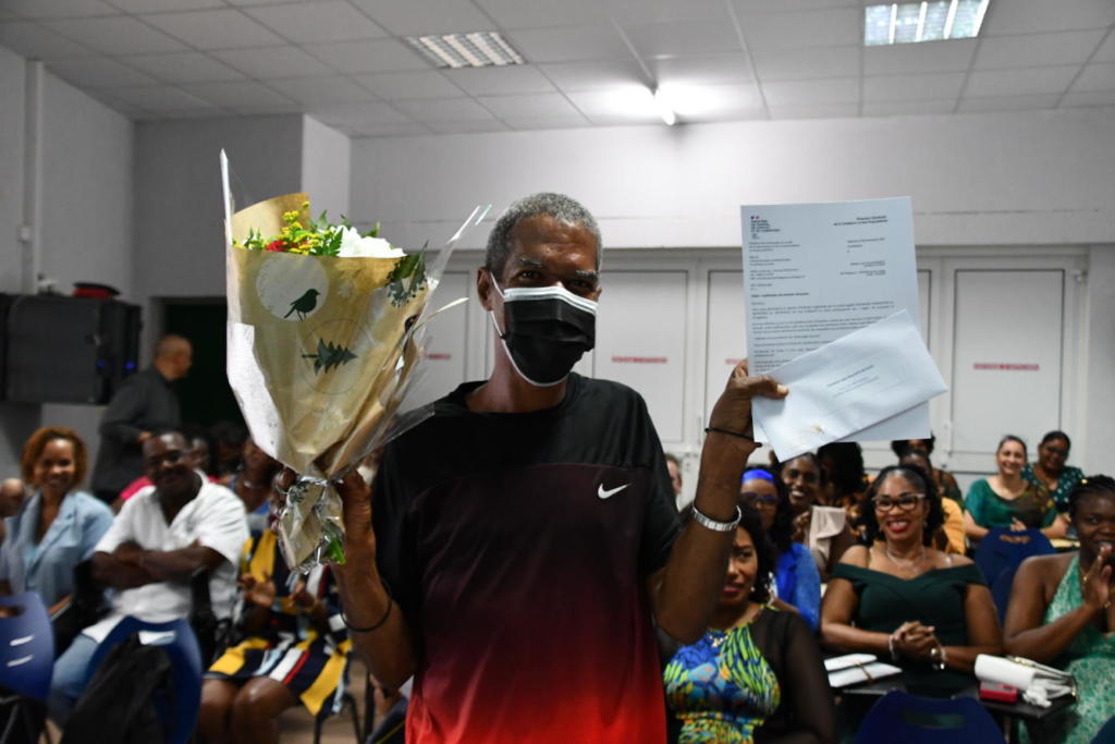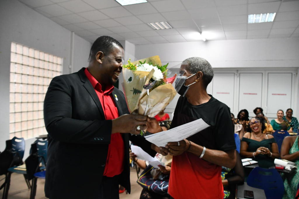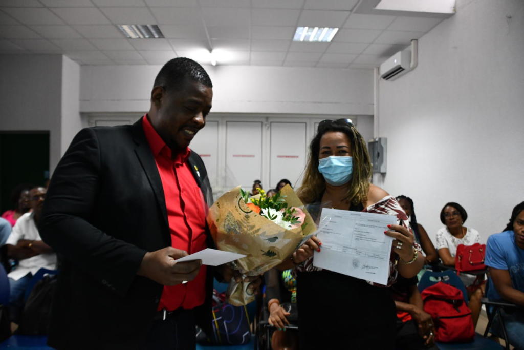 La Collectivité Territoriale de Guyane (CTG) est le plus gros employeur d’agents en contrat aidé. Soucieuse de permettre aux personnes éloignées de l’emploi de développer et/ou d’acquérir des compétences, la CTG a accompagné 9 agents d’entretien en contrat PEC vers une montée en compétence dans un secteur où la demande est forte. Une cérémonie de mise à l’honneur de ces agents aujourd’hui titulaires d’un certificat de compétence professionnelle de niveau 1, était organisée ce jeudi 1er décembre 2022 à l’ENCRE en présence d’Emmanuel Prince, vice-président de la CTG.