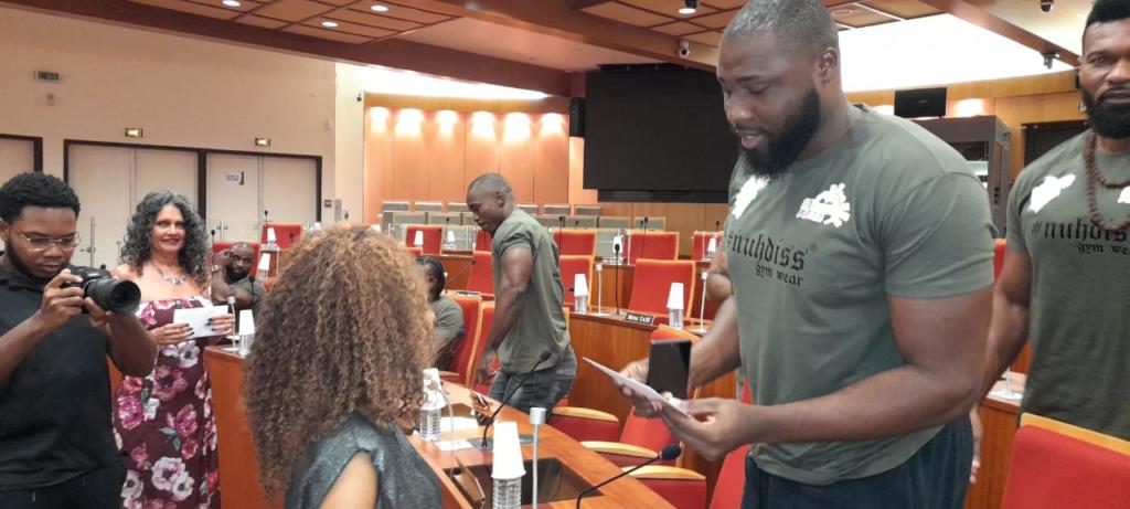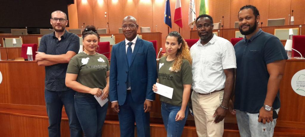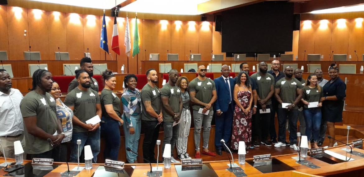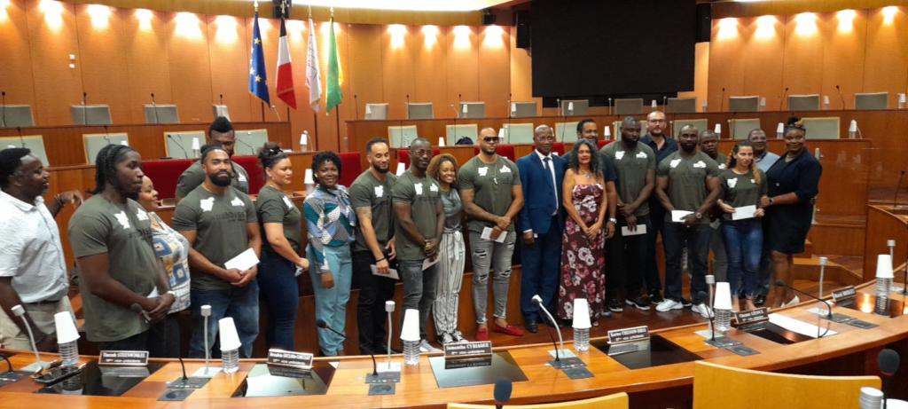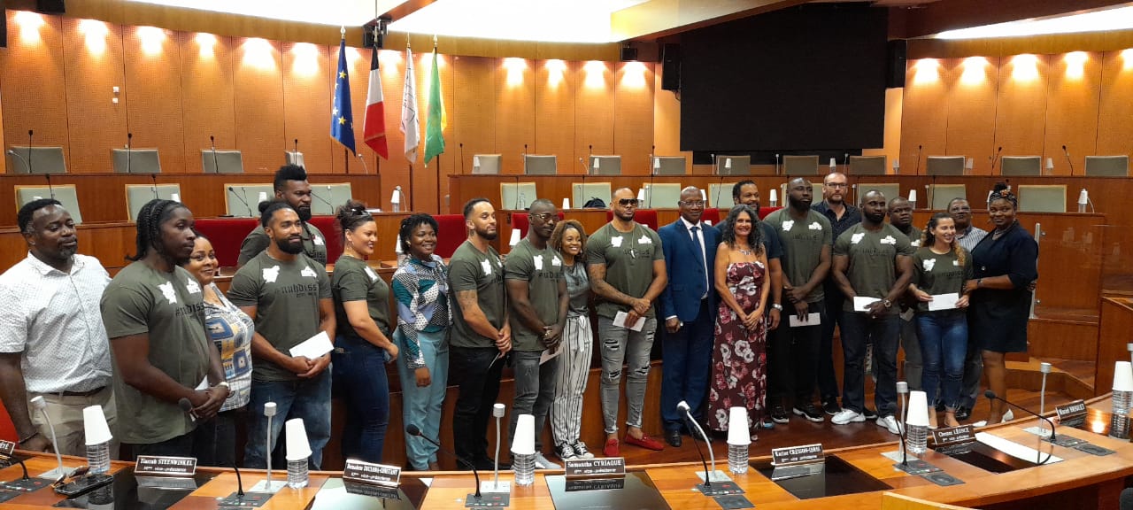 Ce mardi 26 avril 2022, Gabriel Serville, président de la Collectivité Territoriale de Guyane, et plusieurs élus territoriaux ont remis 11 billets d’avion aux athlètes de l’association sportive Barbel Nuh Diss. Cet accompagnement de la CTG permettra aux sportifs de participer au Championnat de France de PowerLifting qui se déroulera à Angers, avant les compétitions européennes et mondiales.