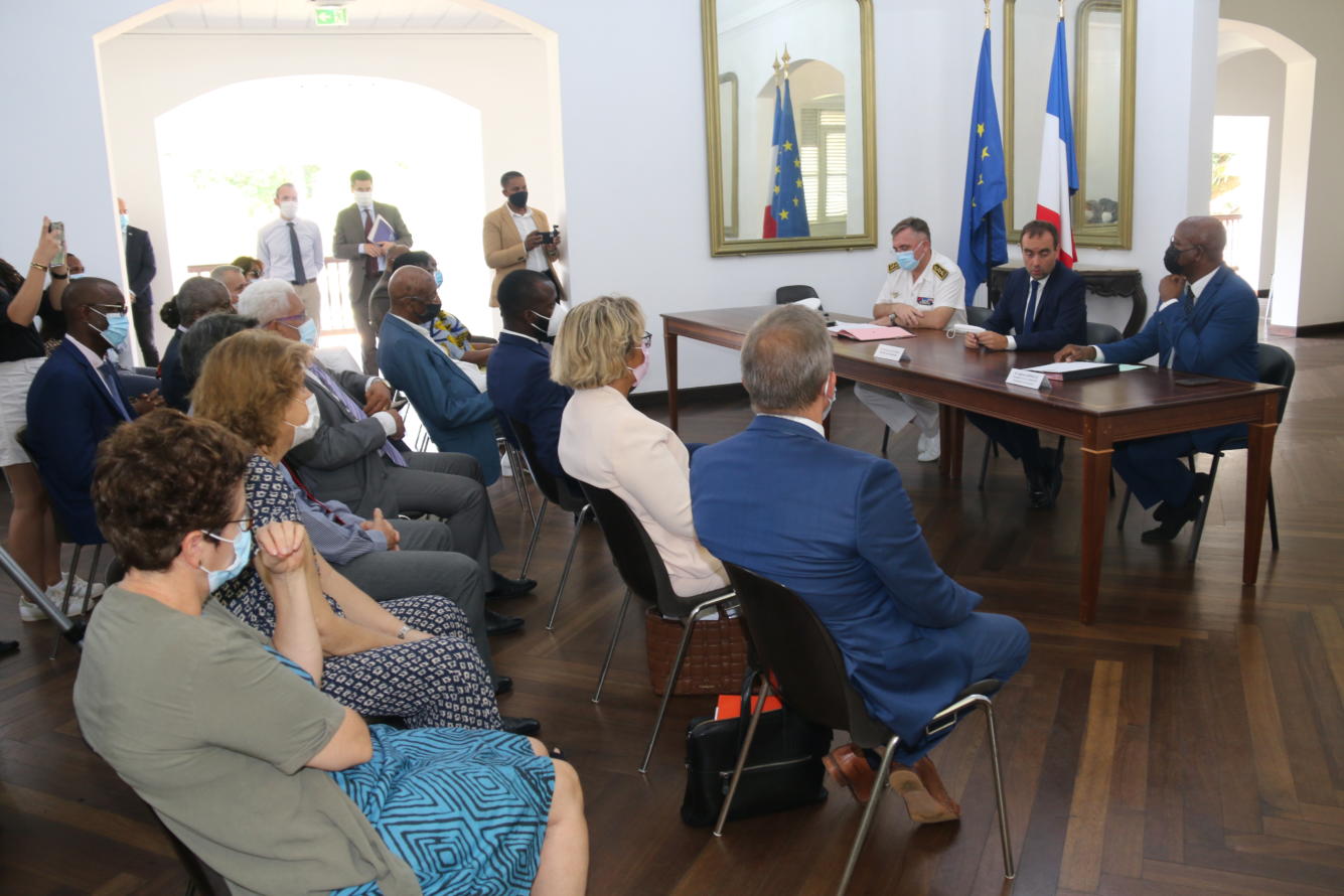 Cette signature officielle se déroulait en présence de Thierry Queffelec, Préfet de la Région Guyane, des parlementaires Marie-Laure Phinéra-Horth, Georges Patient et Lénaïck Adam, et de plusieurs maires de Guyane.