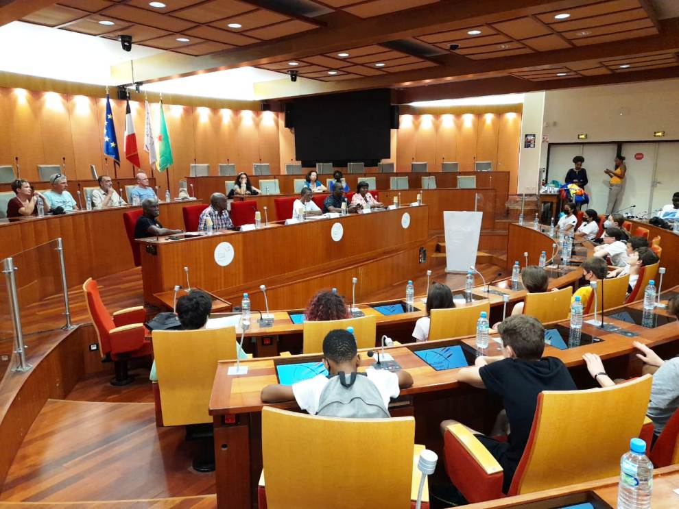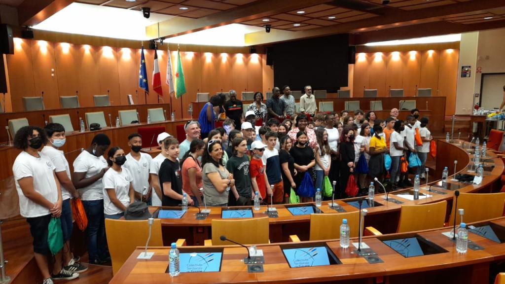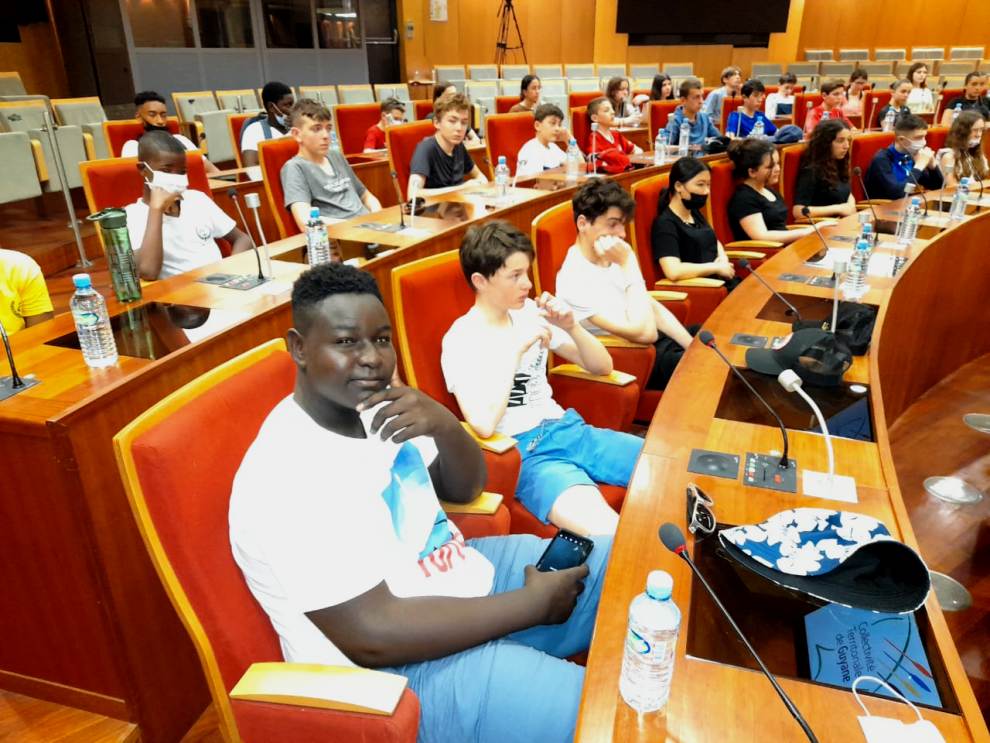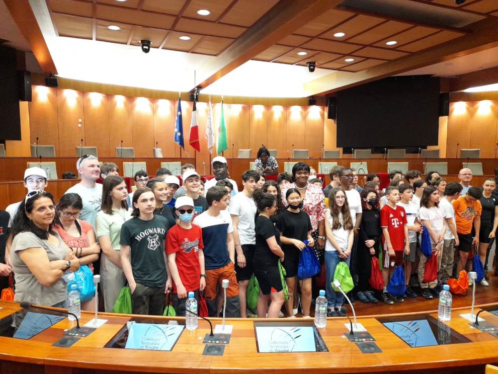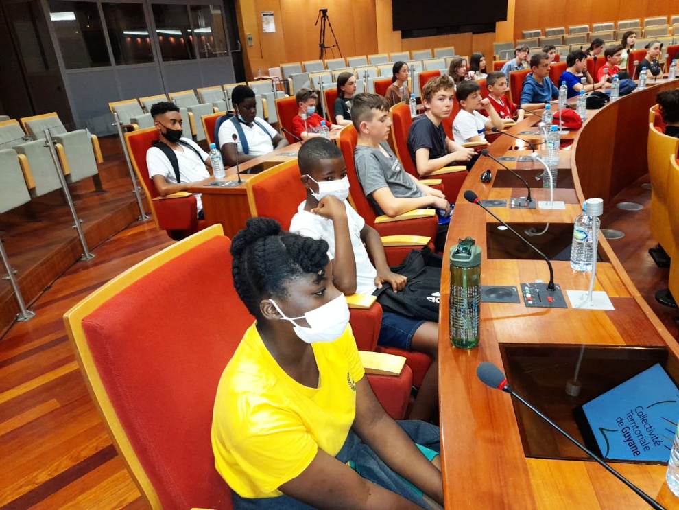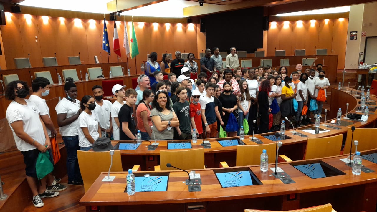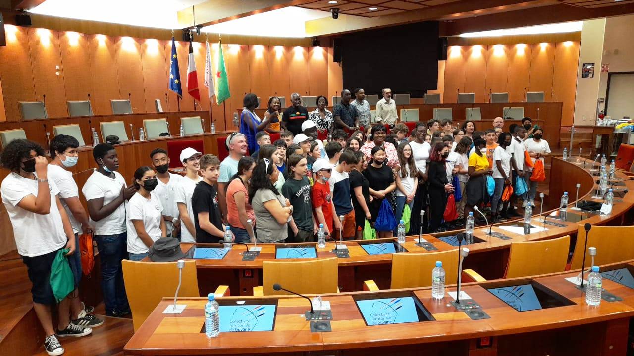 Dans le cadre d’un projet pédagogique autour de l’aéronautique et du spatial, 41 élèves de 4ème et 3ème de la section BIA (Brevet d’Initiation à l’Aéronautique) du collège François Mitterrand de Veynes (Hautes-Alpes), actuellement en visite en Guyane ont été accueillis à l’Hôtel Territorial par Karine Cresson, 12ème vice-présidente de la CTG, déléguée à l’Emploi, la Formation et l’Insertion en présence des élèves de la 4è SEGPA du collège Auguste Dédé de Rémire-Montjoly qui préparent le BIA. L’objectif ? Favoriser le partage des connaissances entre élèves.
