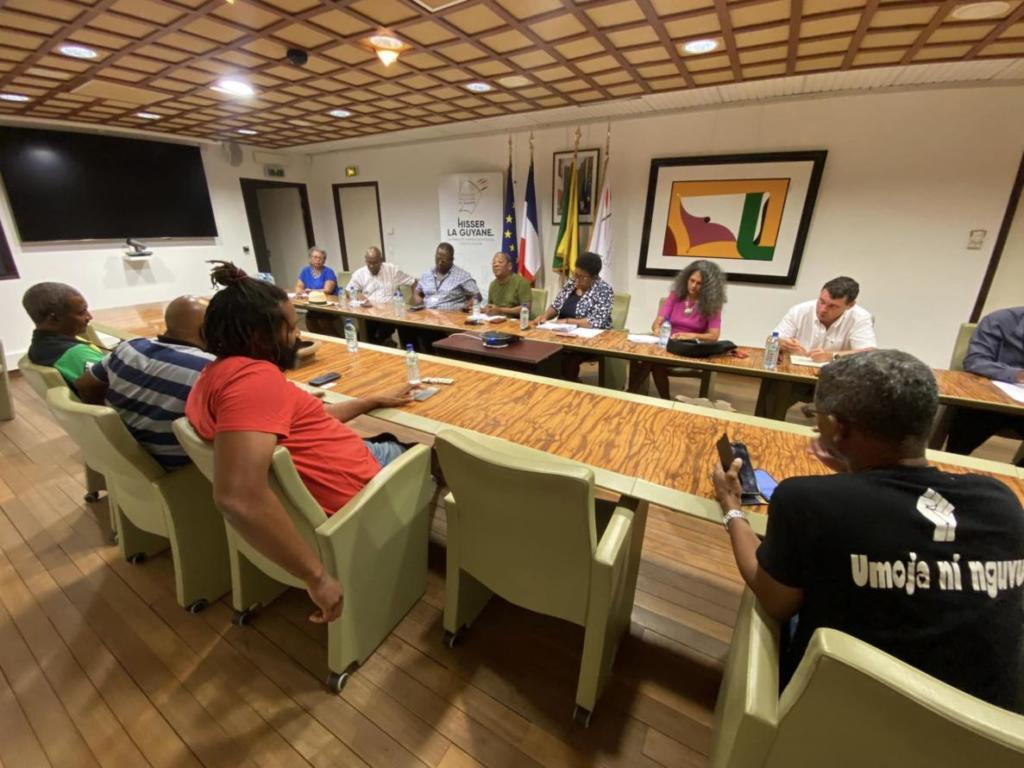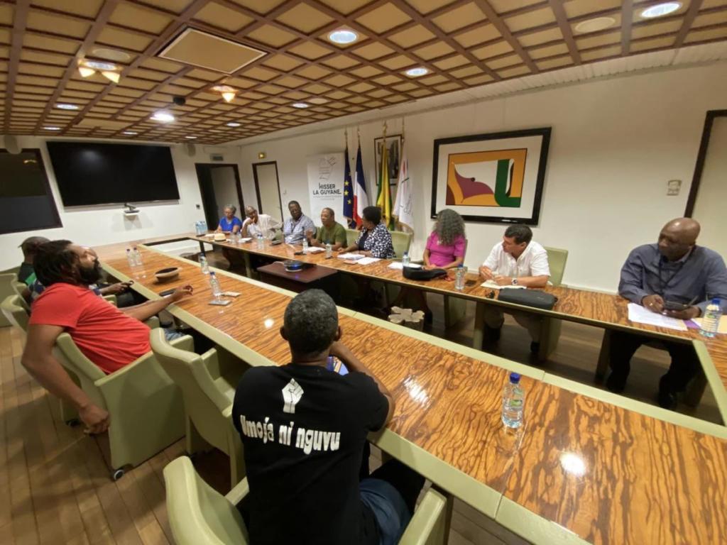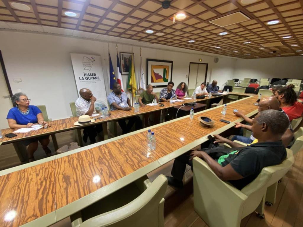 La réunion programmée à la demande de Gabriel Serville, président de la CTG, est présidée par Annie Robinson-Chocho, 2è vice-présidente de la Collectivité et Roger Aron, 7è vice-président délégué à l’Agriculture et à l’Évolution Statutaire.