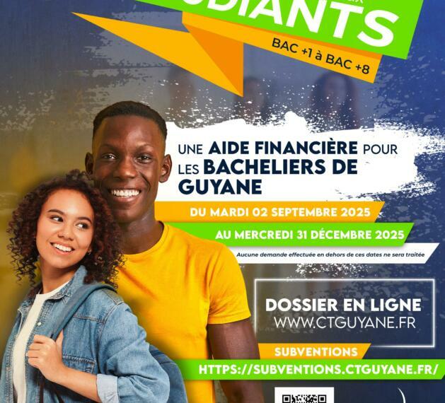 Afin de soutenir les jeunes Guyanais inscrits dans un cycle d’études supérieures suivi en Guyane ou à l’extérieur, la Collectivité Territoriale de Guyane (ATE) a mis en place le dispositif, « Aides Territoriales aux Etudiants » (ATE).