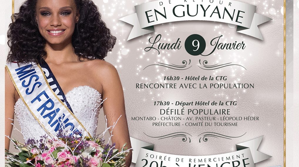La jeune femme, originaire de Matoury, sera de retour en Guyane du 9 au 12 janvier 2017 afin de remercier les guyanaises et les guyanais qui ont été nombreux à la soutenir, et les partenaires qui l’ont suivi dès le début de son parcours. La Collectivité Territoriale de Guyane, en lien avec le Comité Miss Guyane et Miss France Organisation, est chargée d’organiser sa venue, qui sera prise en charge grâce à l’engagement du Président Rodolphe Alexandre et des partenaires de la CTG, conscients de la visibilité offerte pour le territoire, au niveau national, durant ces quelques jours.