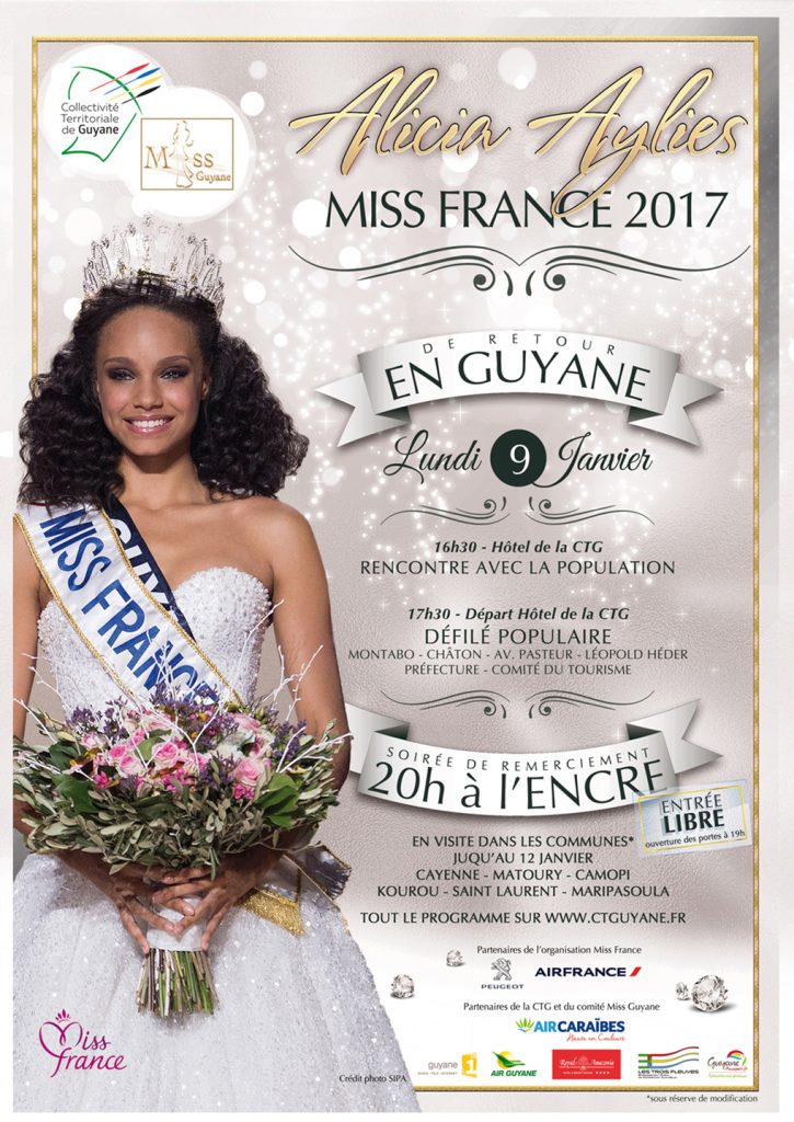 Le samedi 17 décembre dernier, Miss Guyane 2016, Alicia Aylies, était sacrée Miss France 2017 au cours d’une cérémonie organisée à Montpellier et suivie en direct à la télévision par près de 8 millions de téléspectateurs.