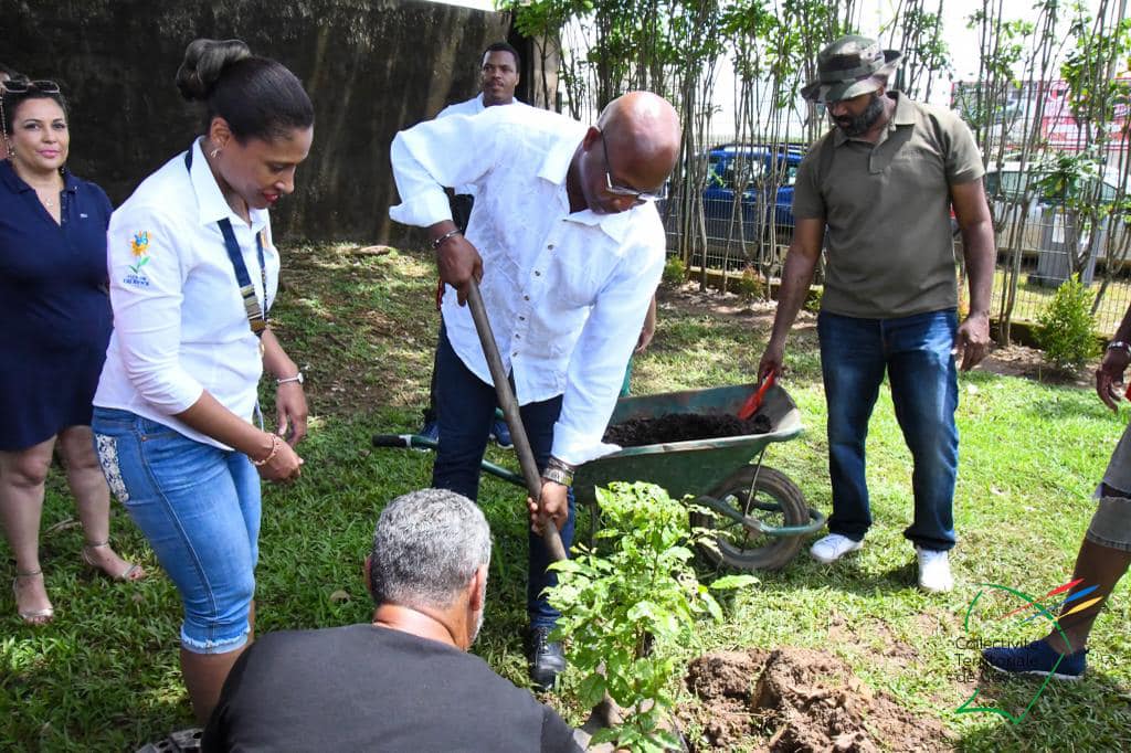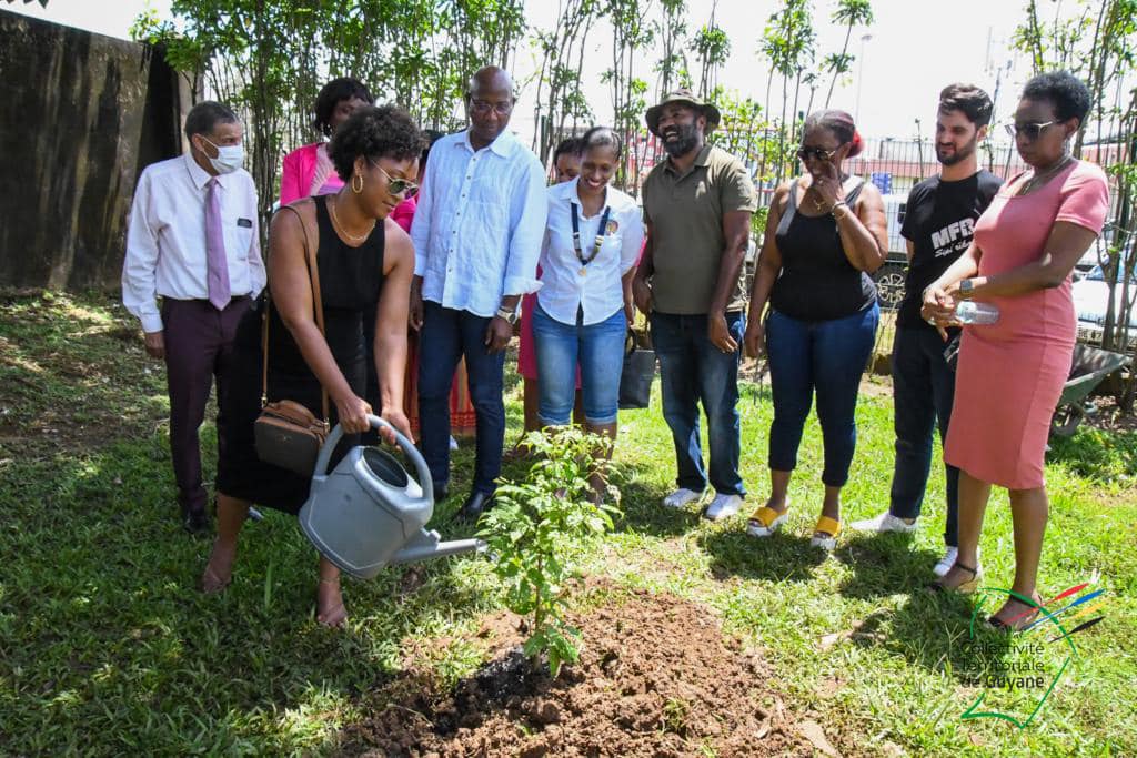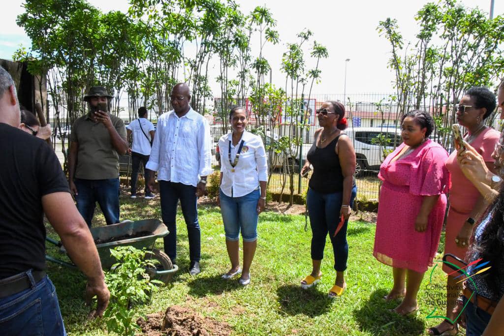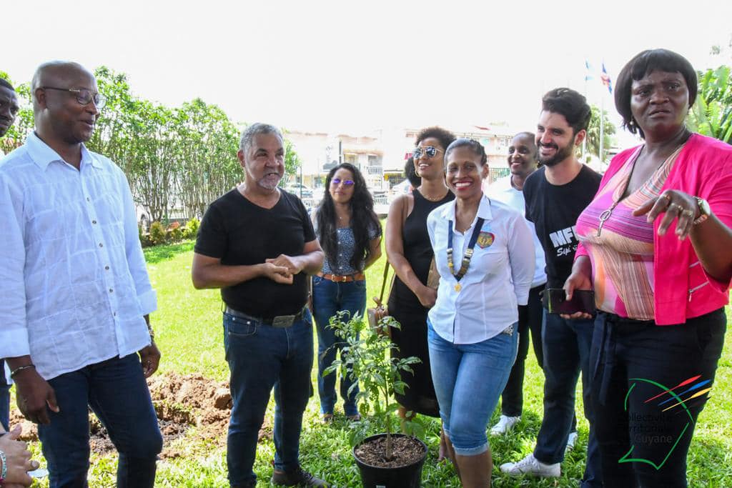 La mise en terre d’un ébène rose, offert par le club Soroptimist International de Cayenne dans la volonté d’œuvrer à la préservation de l’environnement, le club proposait également des barquettes de bouillon d’awara à la vente afin de financer des œuvres sociales.