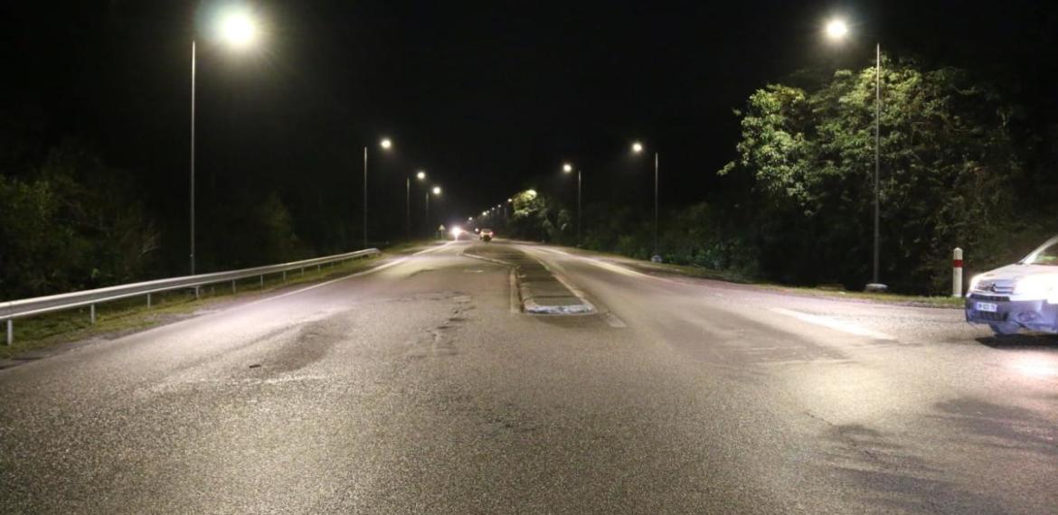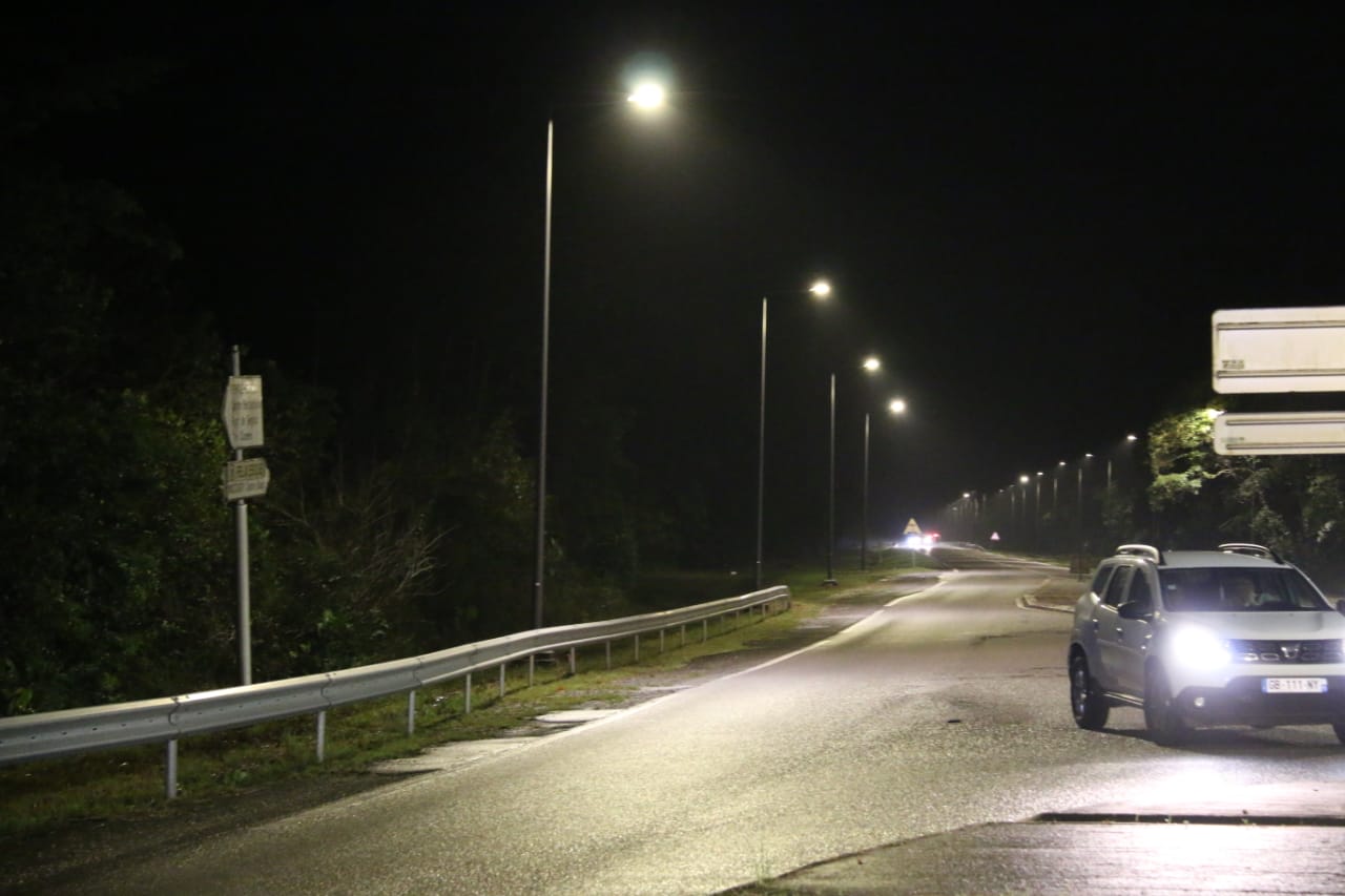 Depuis plusieurs mois, les mâts sont installés mais l’éclairage n’était pas encore opérationnel. C’est désormais chose faite ! Dès le jeudi 31 mars 2022, des phases de test avaient été effectués sur les 260 candélabres qui longent le bord de cet axe routier reliant les communes de Matoury et Rémire-Montjoly.