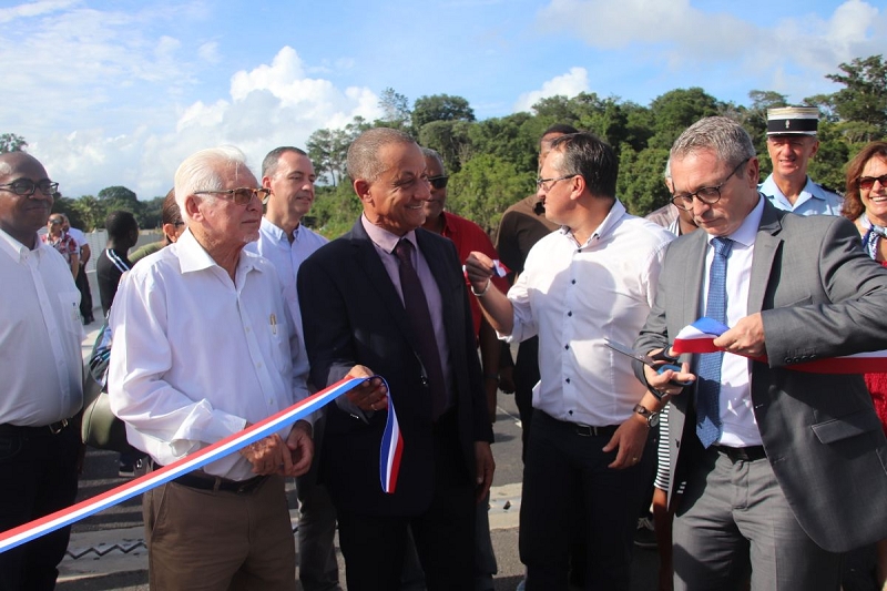 Ce mercredi 20 décembre 2017, le Président de la Collectivité Territoriale de Guyane, Rodolphe Alexandre participait, accompagné de son 4ème Vice-Président, Jean-Claude Labrador et du Conseiller Territorial, Pierre Désert, à l’inauguration du nouveau pont de La comté, à Roura.