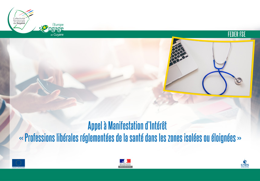 La Collectivité Territoriale de Guyane, autorité de gestion des fonds européens publie l’Appel à Manifestation d’Intérêt « Professions libérales de la santé dans les zones isolées ou éloignées » dans le cadre de la mise en œuvre du PO FEDER FSE 2014-2020.