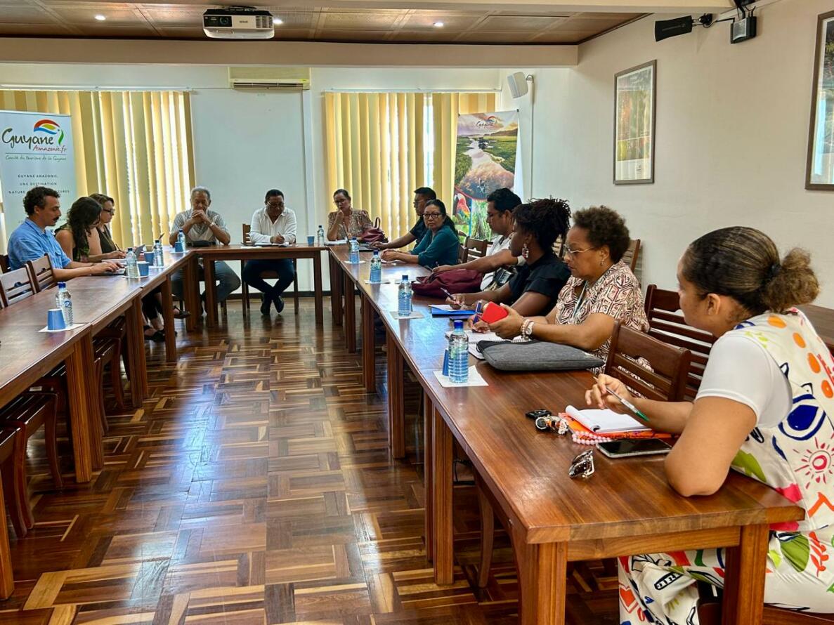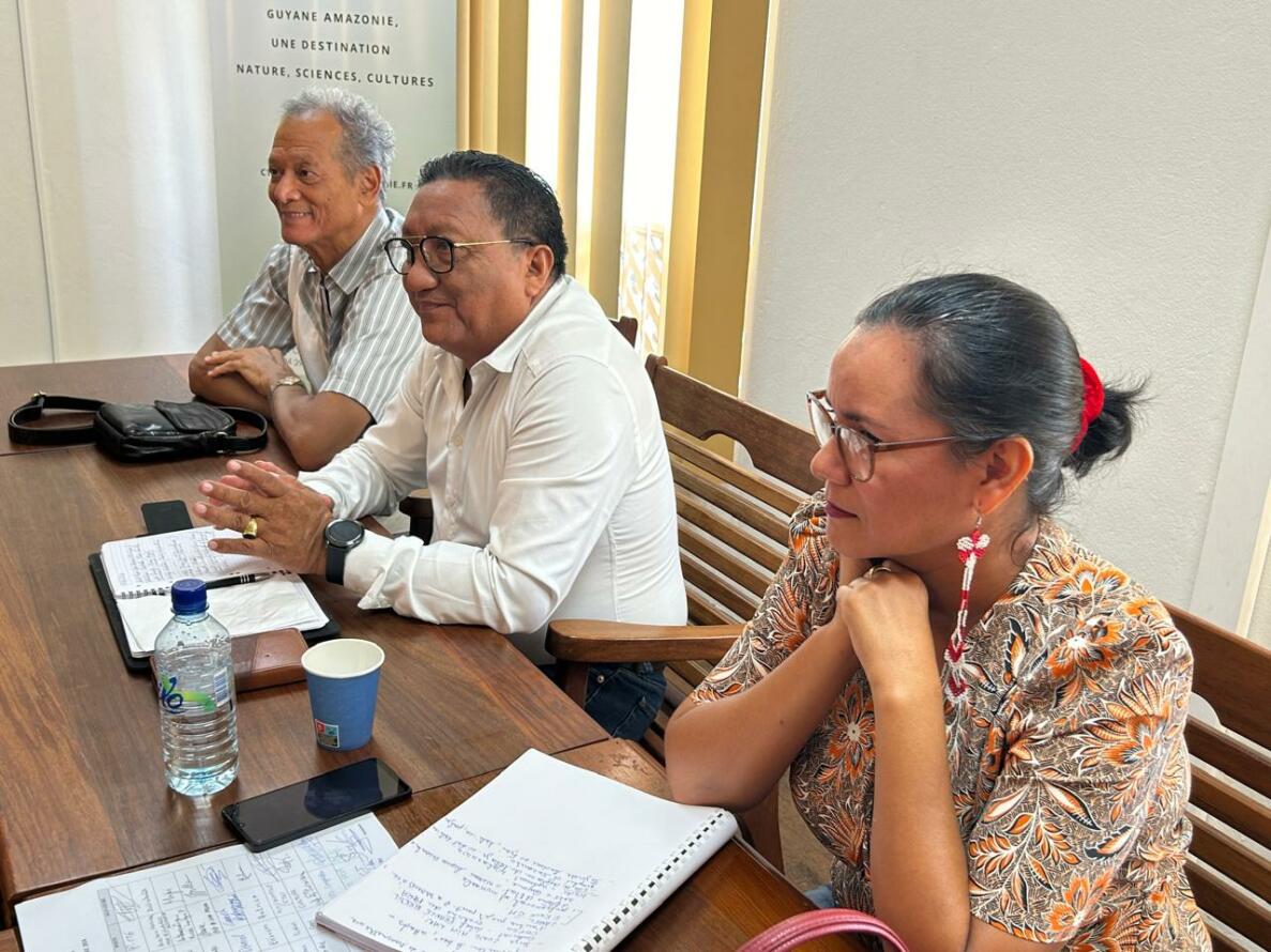 Le vendredi 8 novembre 2024, au terme de leur visite du teritoire, la délégation brésilienne a été reçue par Jocelyn Thérèse, délégué aux Relations avec les Peuples autochtones, et Serge Long Him Nam, délégué aux langues et cultures régionales, en présence des équipes du pôle culture et coopération de la CTG et du rectorat. Cette rencontre a été l’occasion d’un échange sur les appréciations et observations de la délégation. Il s’agissait de contribuer à consolider la feuille de route pour la réalisation des deux expositions, marquant une avancée concrète dans ce projet de valorisation linguistique et culturelle.
