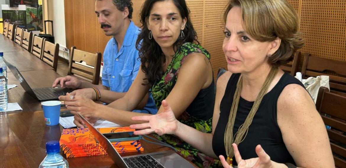 Du 2 au 8 novembre 2024, la Guyane a accueilli une délégation brésilienne du musée de la langue portugaise, comprenant Roberta Saraiva Coutinho (directrice du musée), Fernando Gallo (coordinateur des expositions et de la programmation culturelle), et Majoí Gongora (co-commissaire de l’exposition Nhe’ẽ Porã:  Mémoire et Transformation). Cette visite avait pour objectif de faire découvrir des lieux qui pourraient potentiellement accueillir l’exposition et de favoriser les rencontres avec des acteurs politiques, scientifiques et associatifs locaux, afin d’identifier leurs attentes et enrichir le contenu de l’exposition dédiée aux langues autochtones.