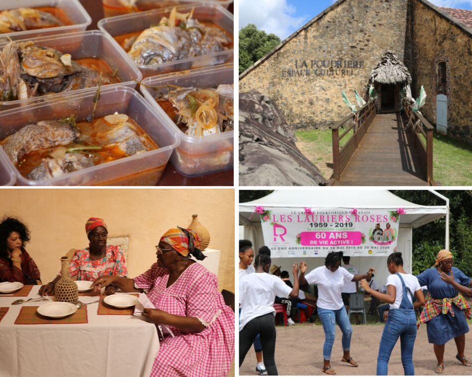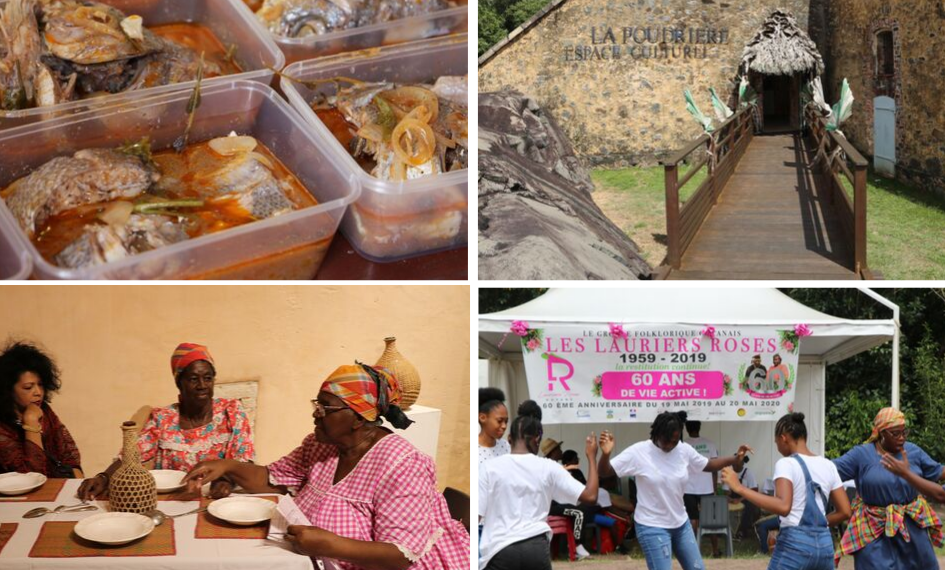 Dans un cadre d’exception, l’espace La Poudrière offre une exposition sur la vannerie créole et des objets anciens et une démonstration de recettes d’antan à base de poissons rares cuisinés (atipa, machoiran jaune, croupia roche, raie, gorè, ti-djol et koko).