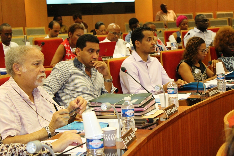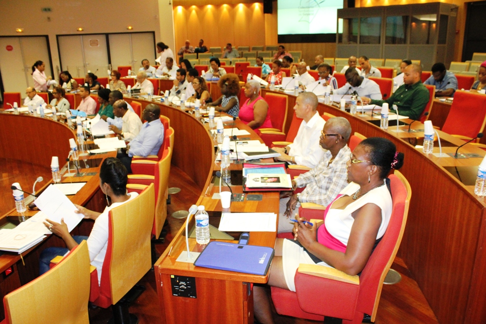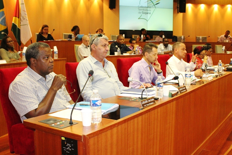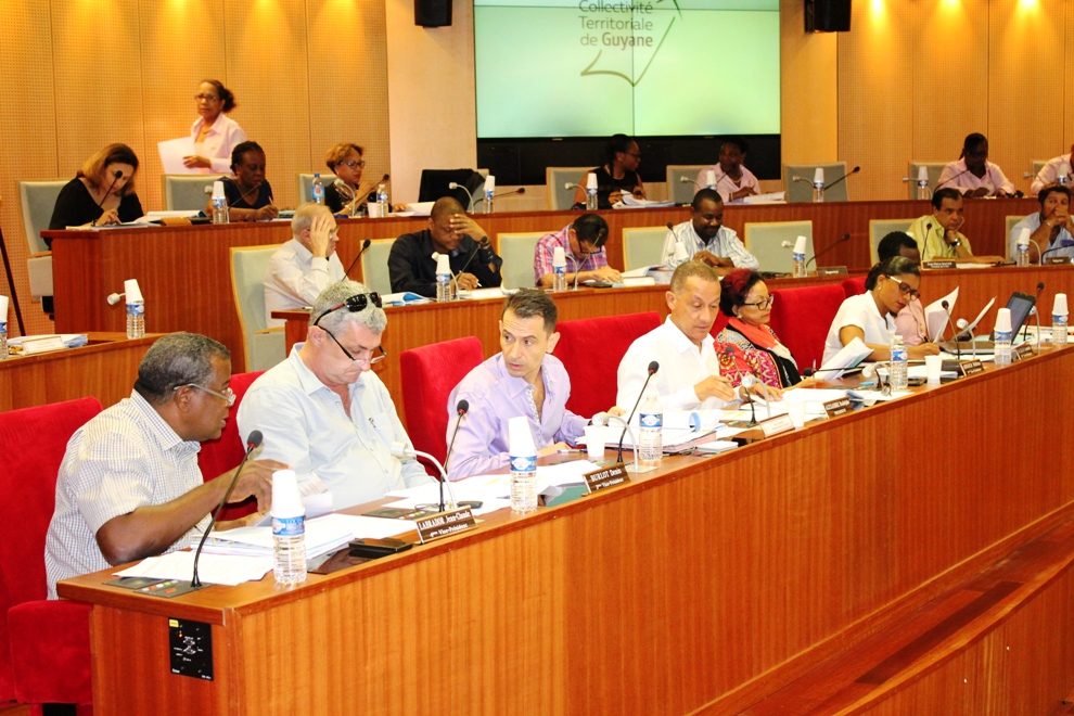 Lors de l’assemblée plénière du 6 avril 2016, le président de la CTG (Collectivité Territoriale de la Guyane) et les conseillers territoriaux ont examiné un certain nombre de rapports portant, notamment sur les règles d’attribution des subventions et des aides pour la Jeunesse, la Vie Associative et la Cohésion Sociale, l’économie et les finances dans la salle de délibérations de l’hôtel Territorial à Cayenne.