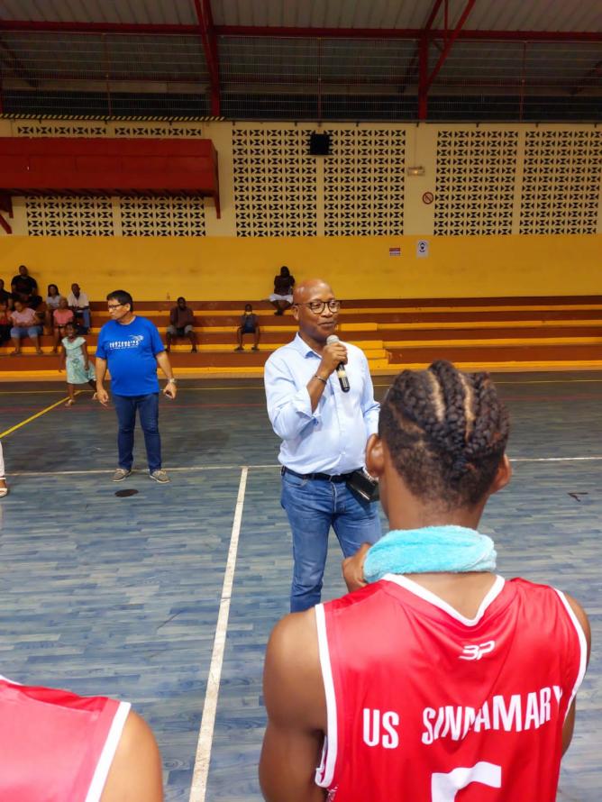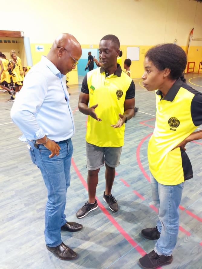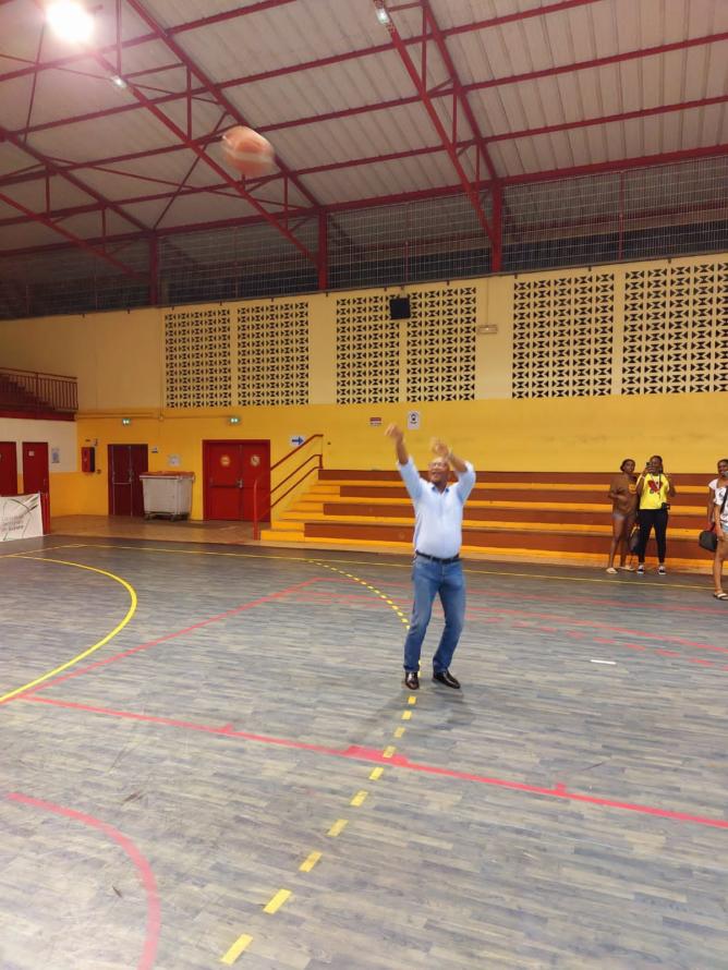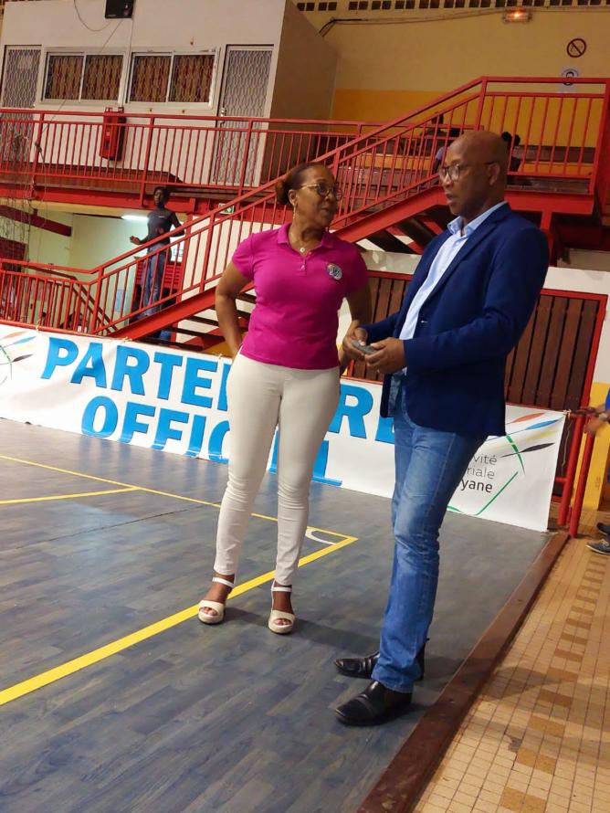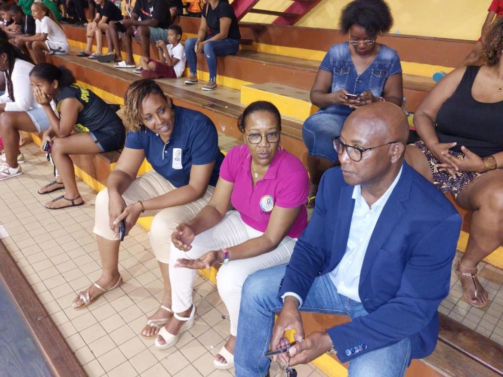 Gabriel Serville, président de la Collectivité Territoriale de la Guyane (CTG), Emmanuel Prince, 11ème vice-président délégué aux Cultures, patrimoine et transmission, ont assisté aux matchs qui ont mené au sacre du Sport Guyanais chez les filles et les garçons.