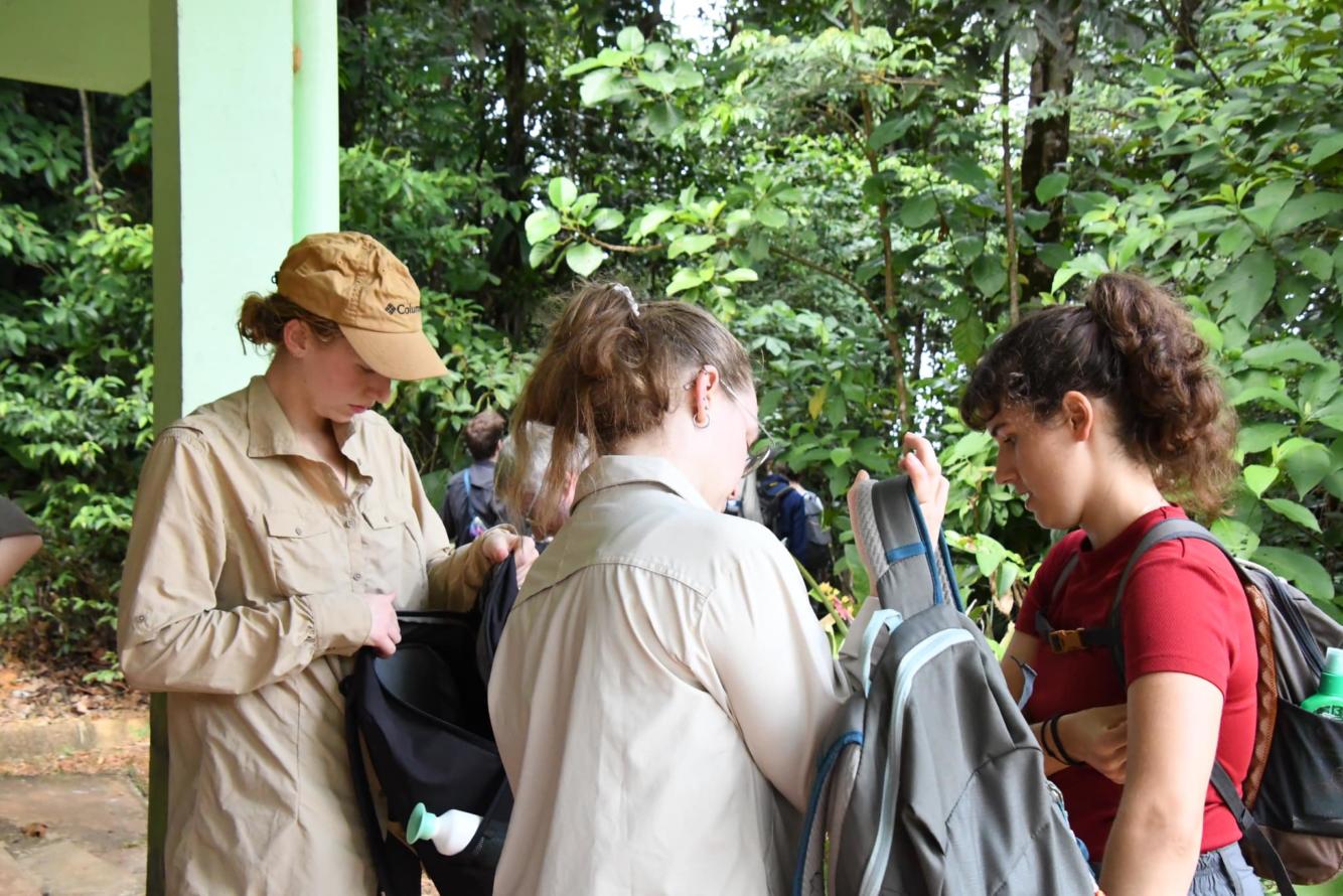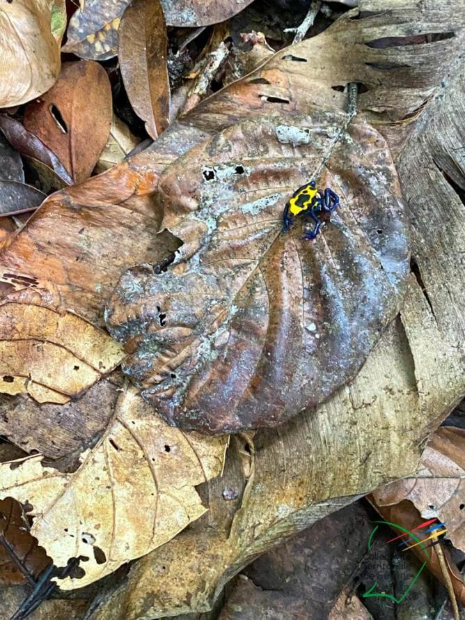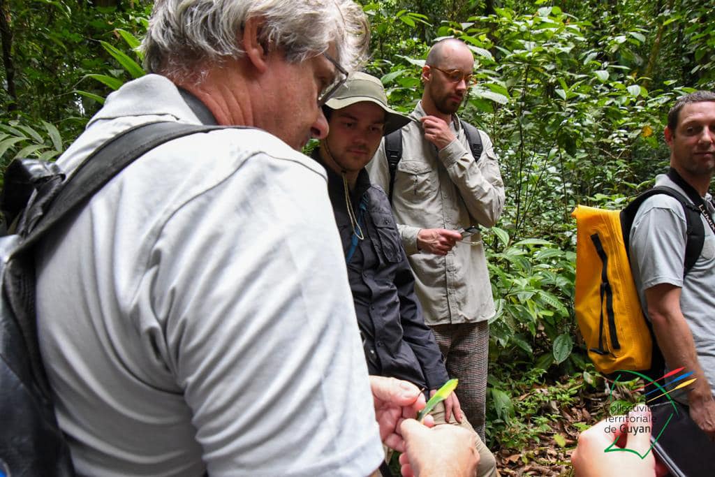 Bien que la matinée était destinée à un focus sur la flore guyanaise, les étudiants ont pu croiser plusieurs espèces animales de la forêt, comme l’emblématique dendrobate à tapirer, ou encore les plus discrets crapauds feuilles ou fourmis flamandes (une des plus grosses fourmis du monde).