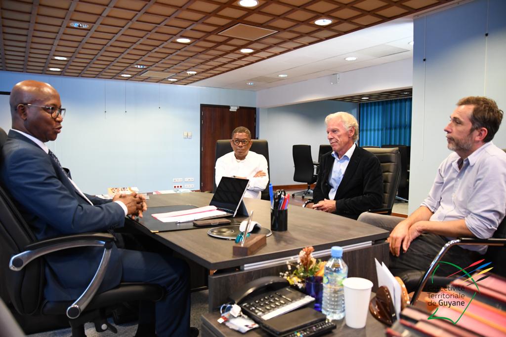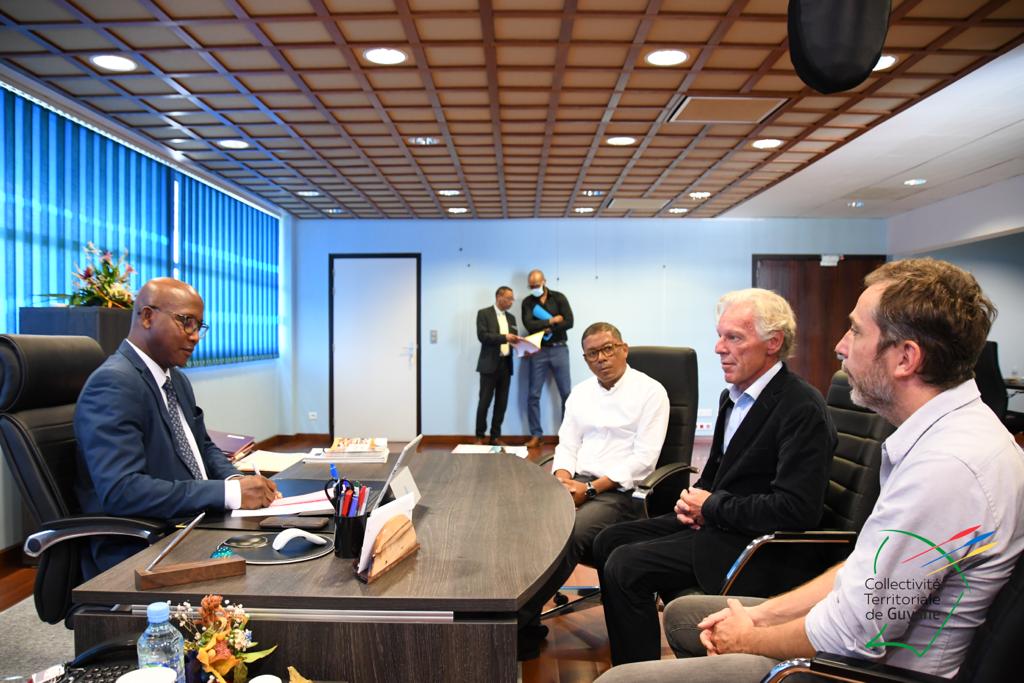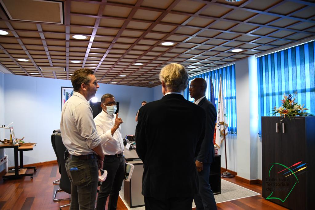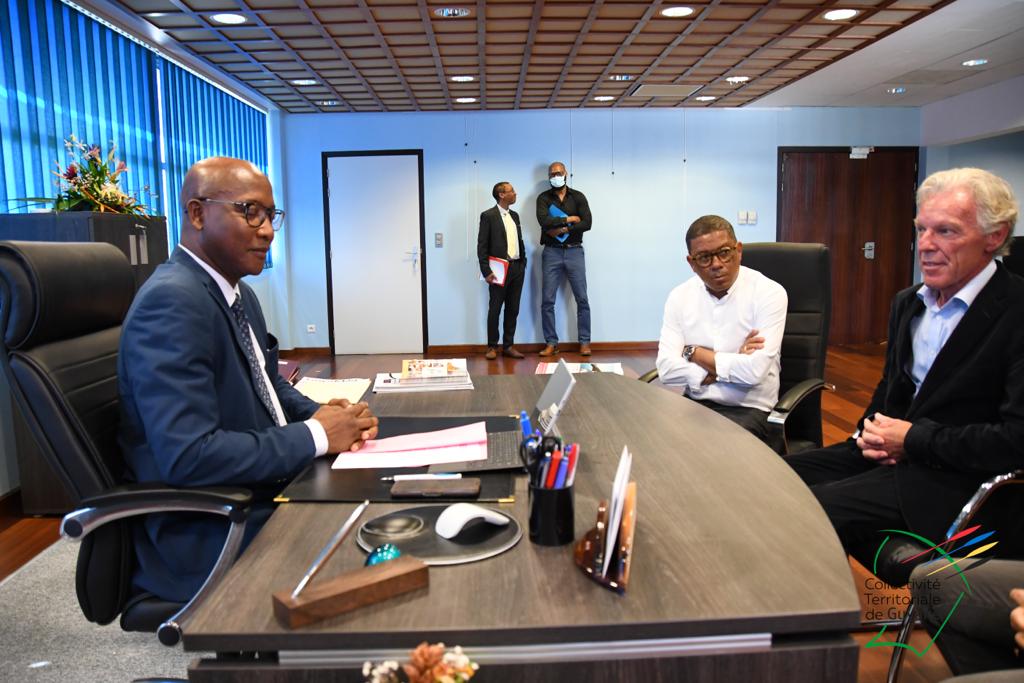 Ce vendredi 29 octobre 2021 s’est tenue une rencontre entre Gabriel Serville, président de la CTG, et Bruno Dupety, directeur international et président de la Fédération Nationale des Travaux Publics en présence de Franck Ho Wen Sze, président de la FRBTP Guyane.