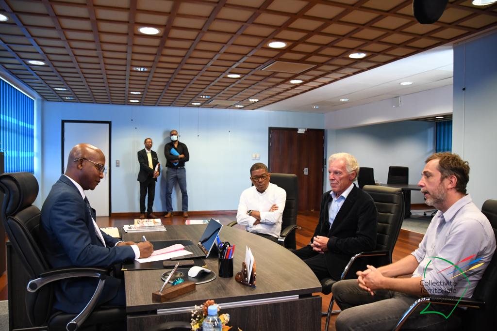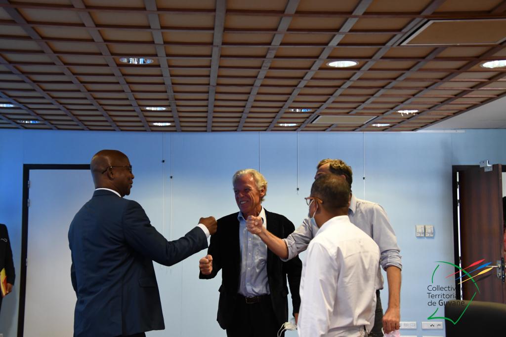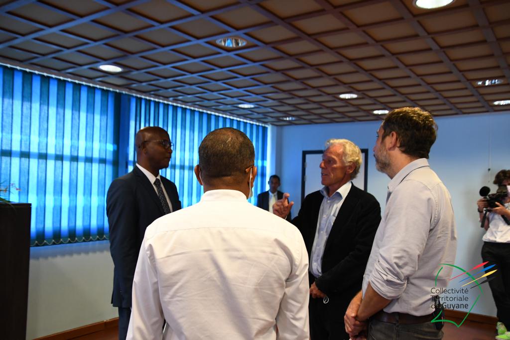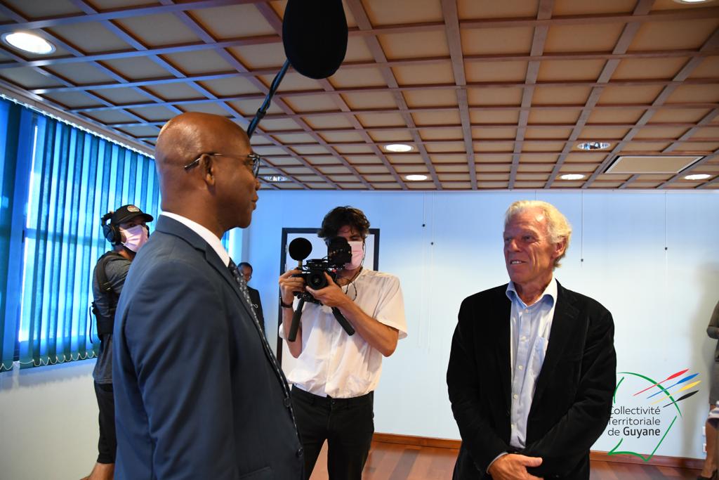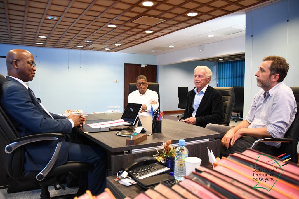 Ce vendredi 29 octobre 2021 s’est tenue une rencontre entre Gabriel Serville, président de la CTG, et Bruno Dupety, directeur international et président de la Fédération Nationale des Travaux Publics en présence de Franck Ho Wen Sze, président de la FRBTP Guyane.