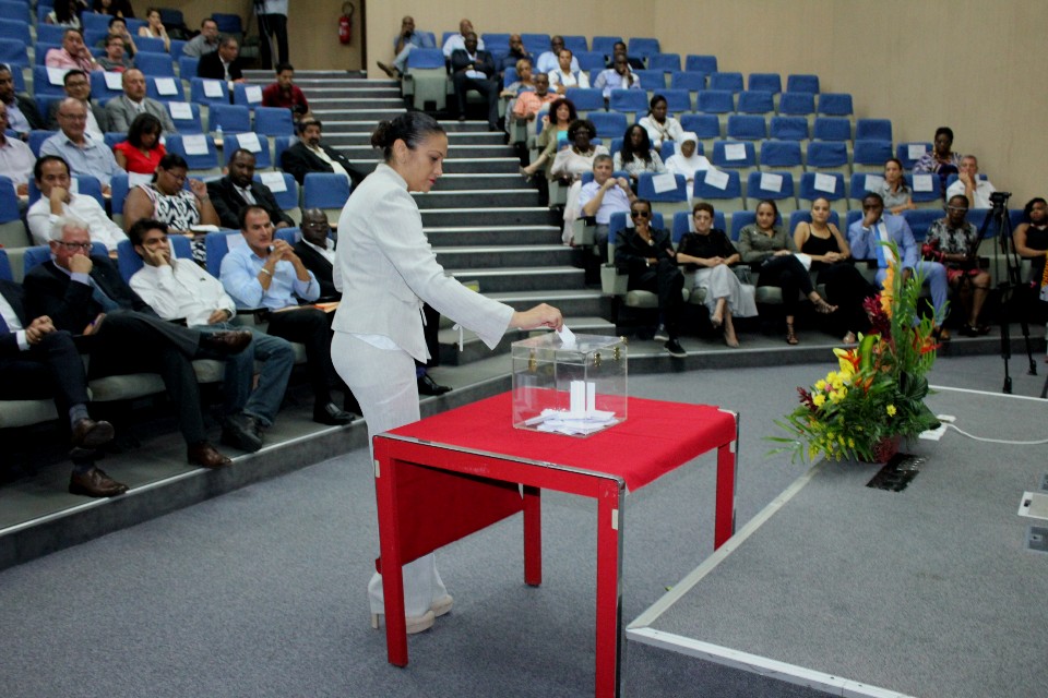 A l’issue de la délibération, l’Assemblée a élu Carine Sinaï-Bossou avec une large majorité à la présidence de la CCI de Région Guyane pour cette nouvelle mandature 2017-2021 ce mardi 12 septembre 2017 avec 31 voix sur 34 dont 2 bulletins blancs et 1 bulletin nul.