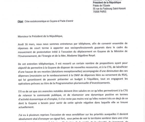 Mouvements sociaux : le Président de la CTG interpelle le Chef de l’Etat