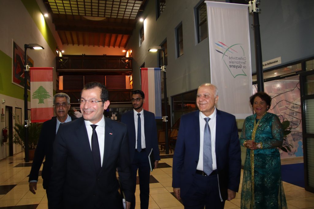 L’Ambassadeur du Liban en France et le consul honoraire du Liban à Cayenne se sont entretenus avec le président de la CTG afin d’échanger sur la Guyane, ses particularités, territoire géostratégique, seul port spatial européen, dotée de ressources naturelles exceptionnelles, avant la cérémonie de présentation du consul devant le corps consulaire et la communauté libanaise de Guyane.