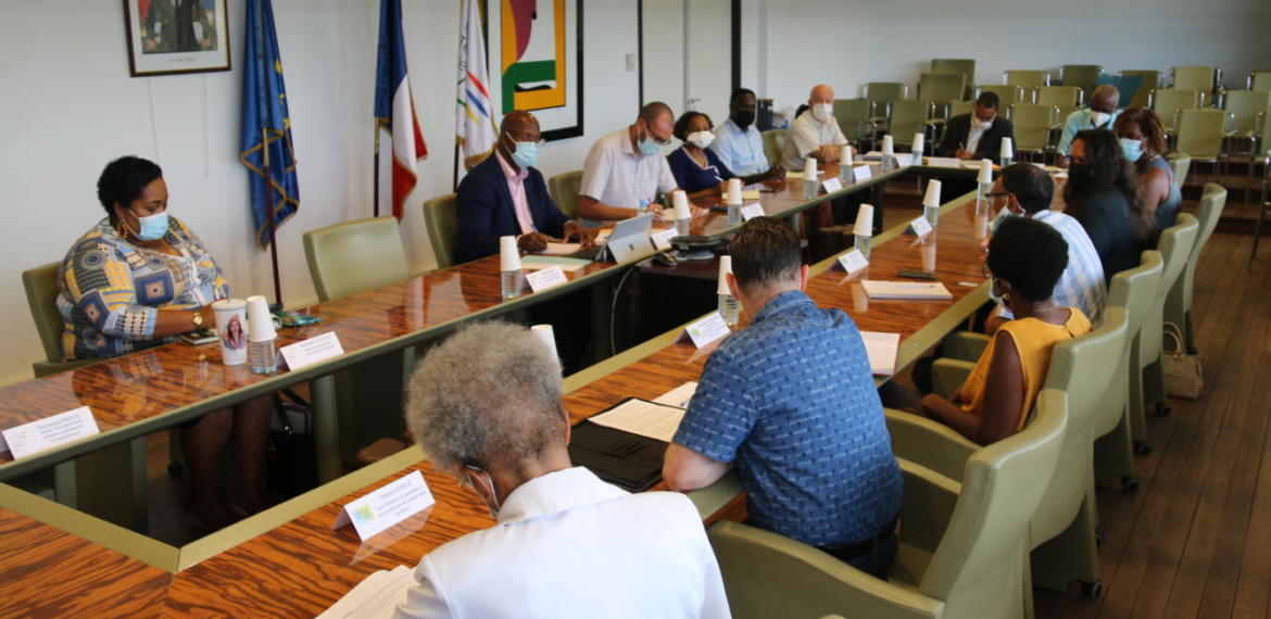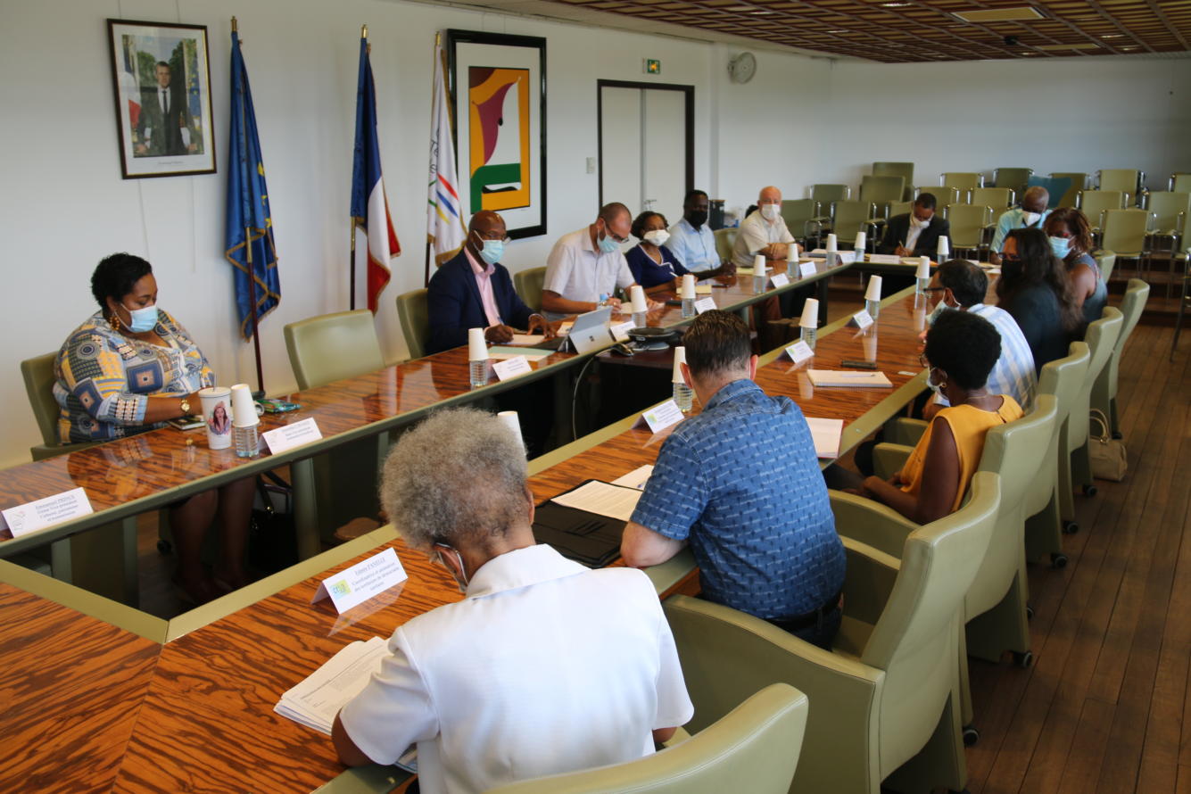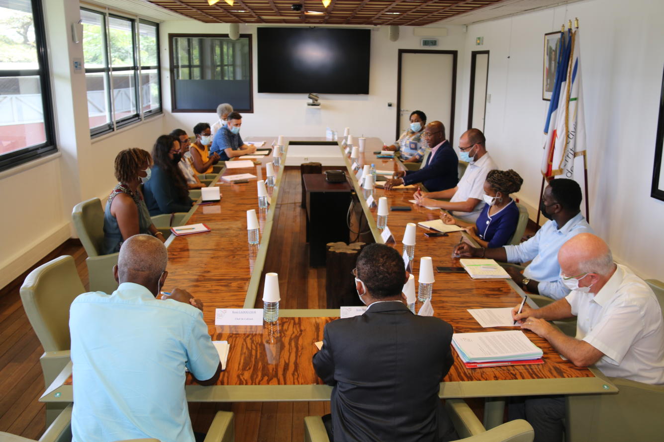 Participaient également à cette réunion aux côtés de l’Exécutif territorial, plusieurs élus territoriaux parmi lesquels Patricia Saïd, 4è vice-présidente déléguée à la solidarité et la santé, Philippe Bouba, 5ème vice-président en charge de l’enseignement supérieur et de la recherche, Samantha Cyriaque, 8ème vice-présidente déléguée à l’autonomie et au handicap, Chester Leonce, 9ème vice-président en charge du territoire, du désenclavement et des transports, ainsi que Bernadette Duclona, déléguée à la citoyenneté et au vivre ensemble.