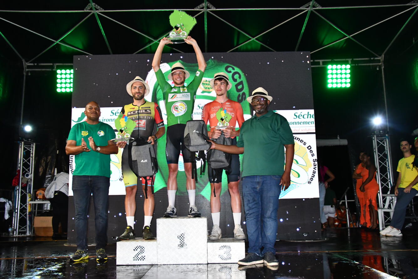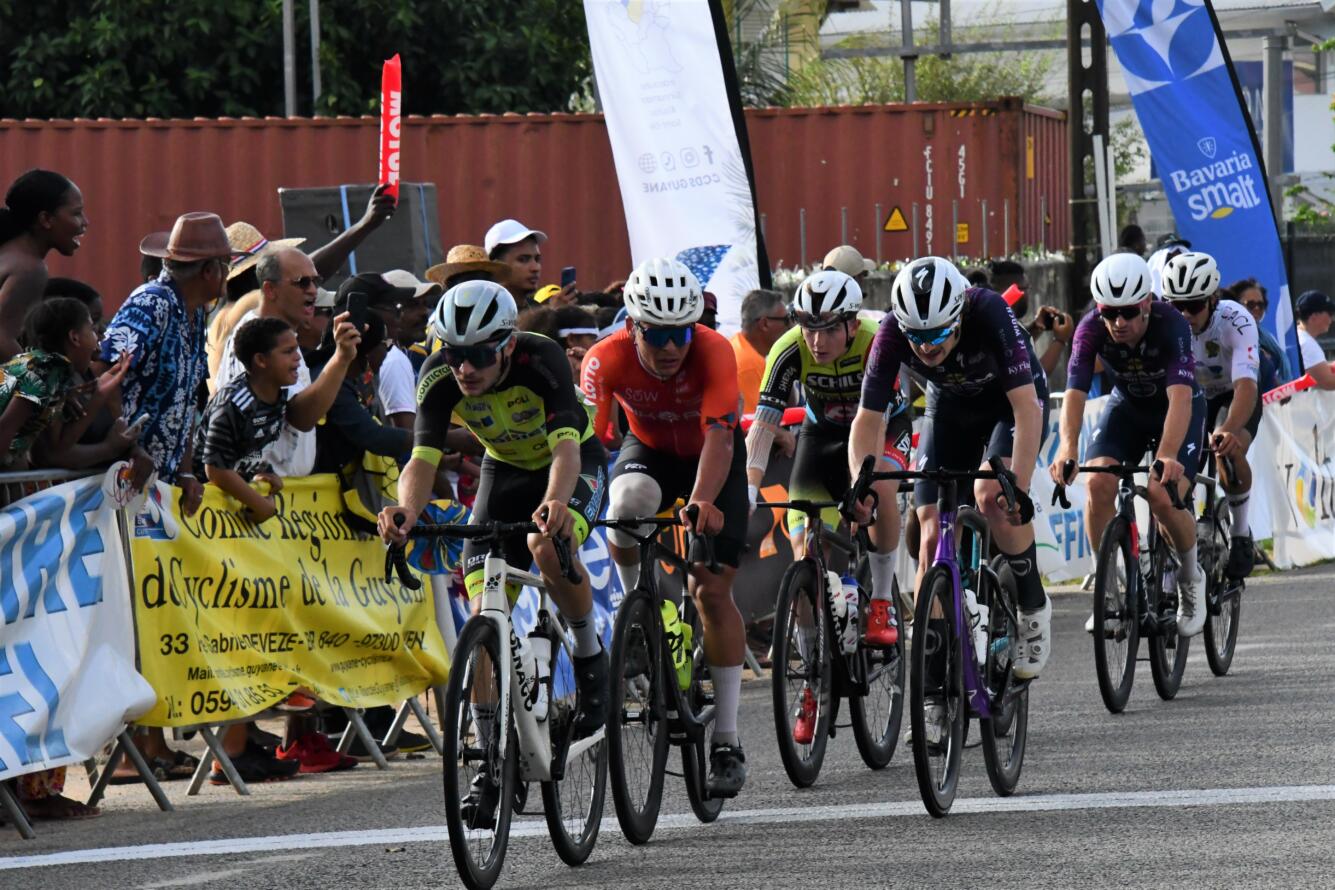 L’ultime parcours entre Kourou et Cayenne a été remporté par Mathieu Goulet (Entreposage Bluebird-Québec), devant l’hôtel territorial. Sur le podium de l’étape, il est suivi par Victor Lebon (E.C Bornheures), deuxième, et Charlie Lacaille (Schils-Doltcini RT), troisième.