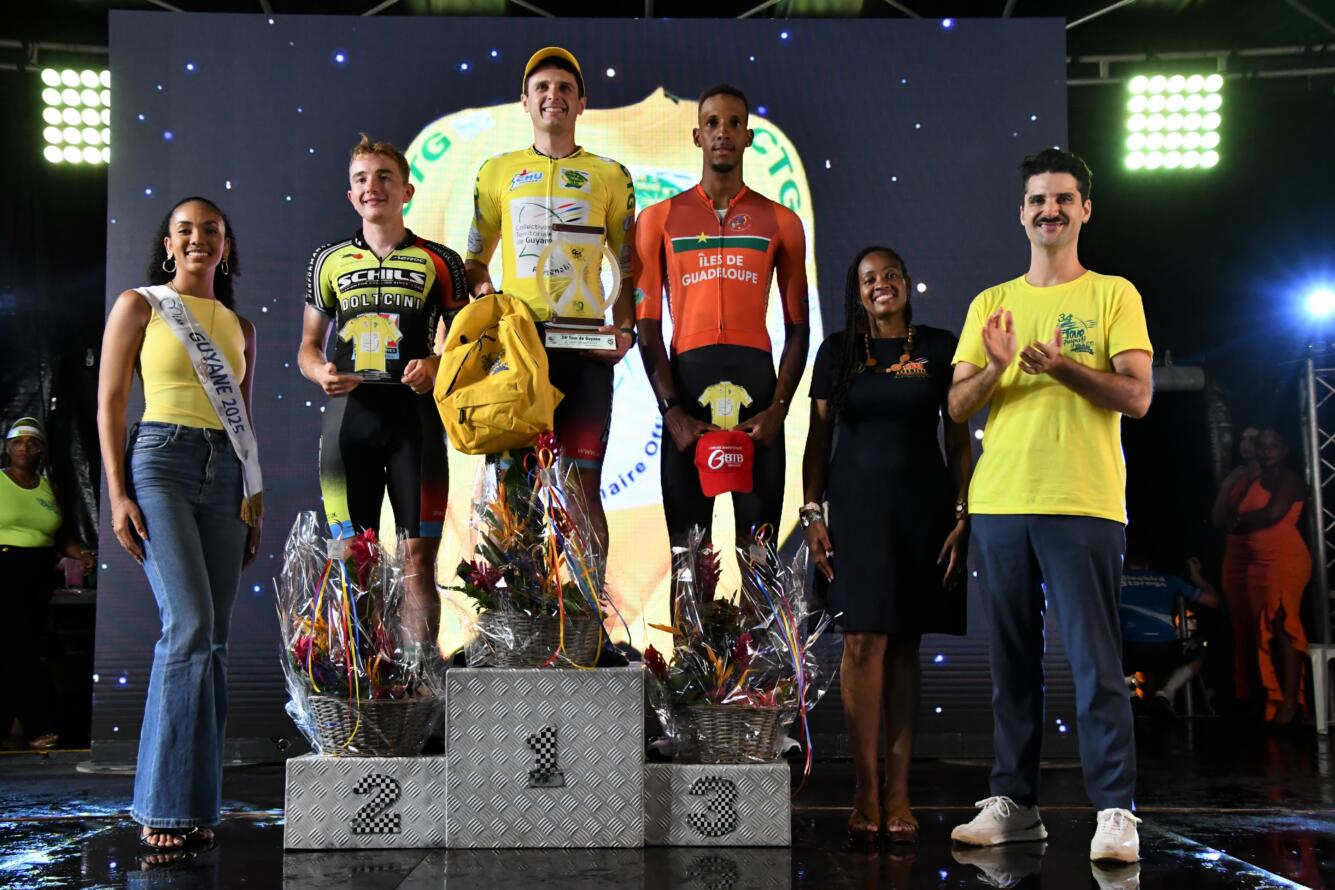 Après neuf jours intenses de compétition et près de 1 297 km parcourus, le grand vainqueur du Tour de Guyane 2025 est Oscar Hutchings (Schils-Doltcini). Il conserve le maillot jaune sponsorisé par la Collectivité Territoriale de Guyane (CTG).