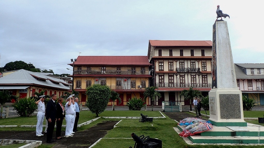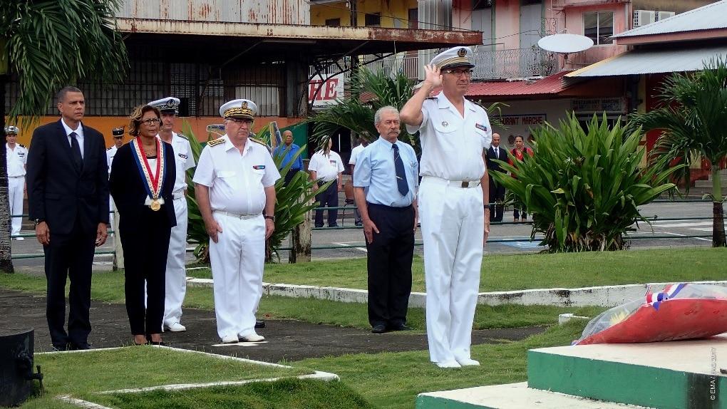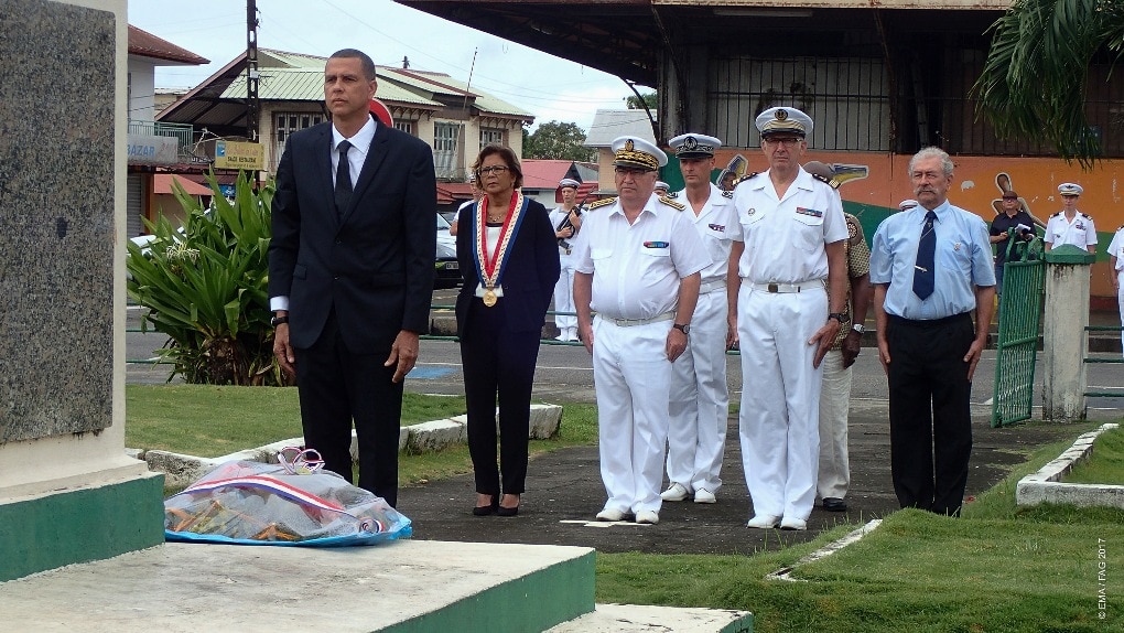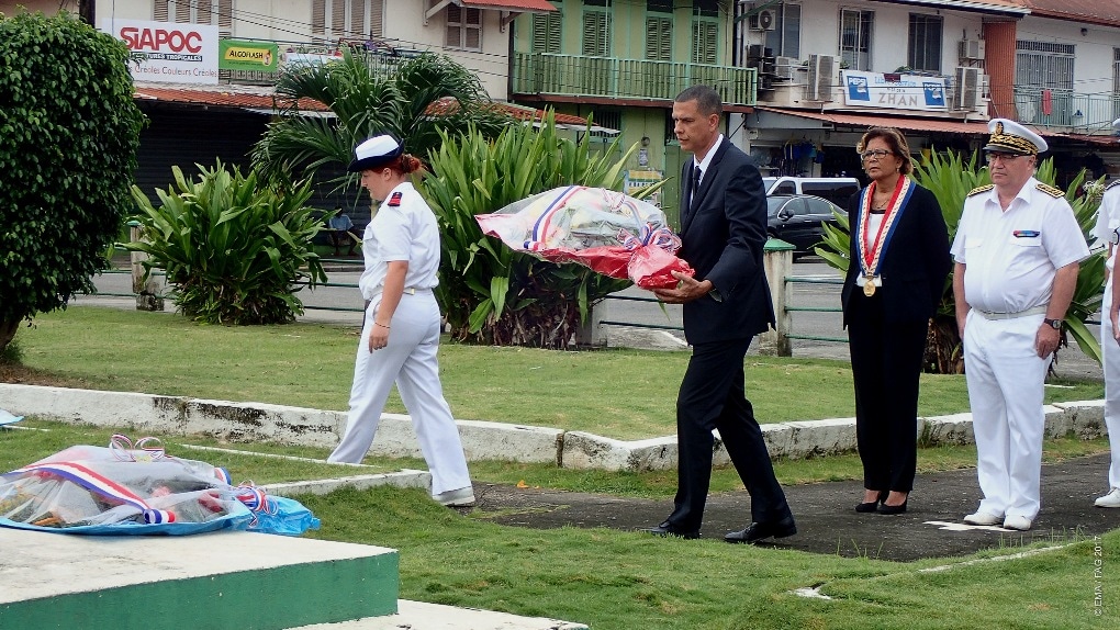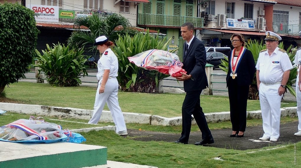 Ce dimanche 19 mars 2017 se déroulait au monument aux morts, place du Coq à Cayenne, la Commémoration de la Journée nationale du souvenir et de recueillement à la mémoire des victimes civiles et militaires de la guerre d’Algérie et des combats en Tunisie et au Maroc, en présence du Préfet de Guyane, Martin Jaeger, du Capitaine de vaisseau, Christophe Boin adjoint au Commandant supérieur des Forces Armées de Guyane, du 12è vice-président de la Collectivité Territoriale de Guyane, Claude Plénet, délégué à l’Education, la Formation professionnelle et l’Apprentissage, du Maire de la Ville de Cayenne, Marie-Laure Phinéra-Horth et du représentant de l’association des Anciens combattants.