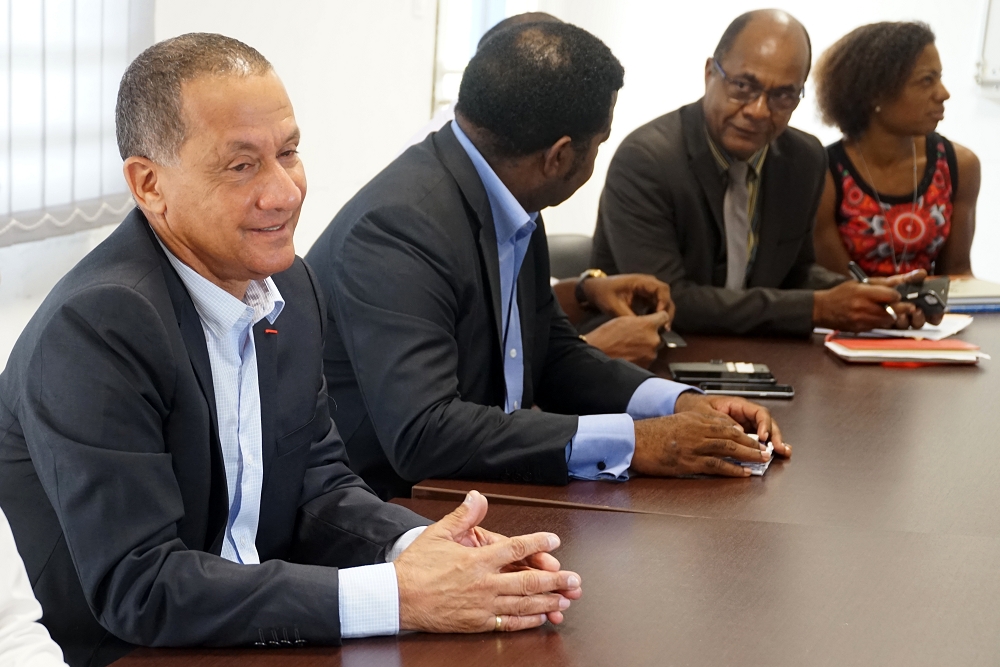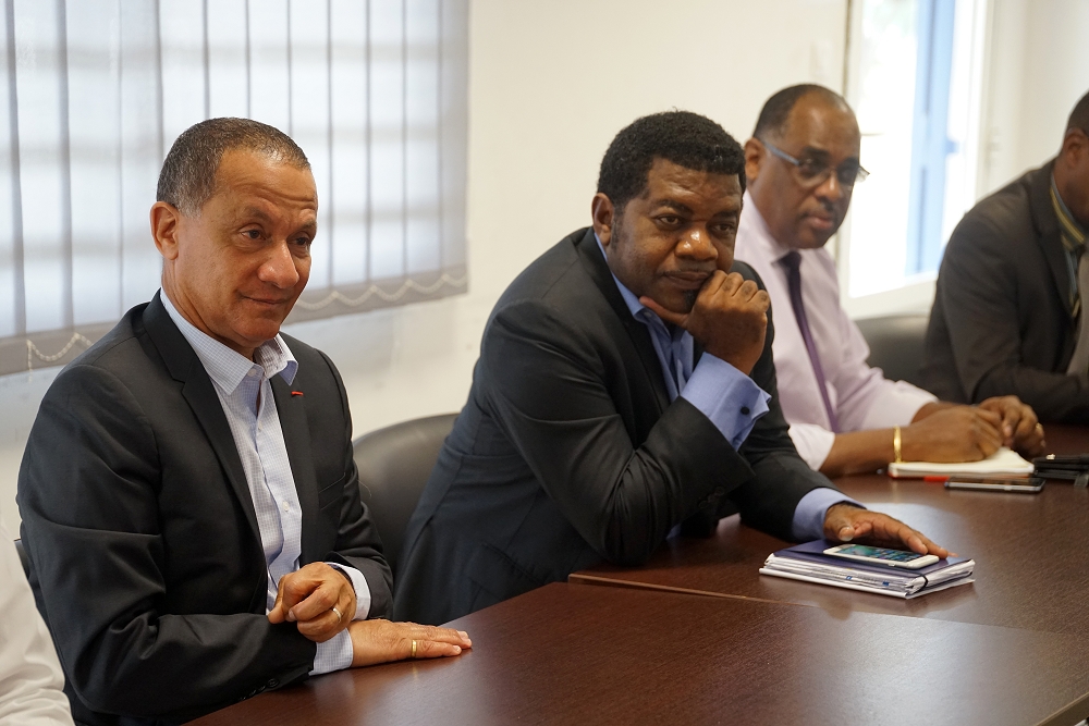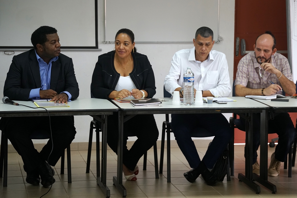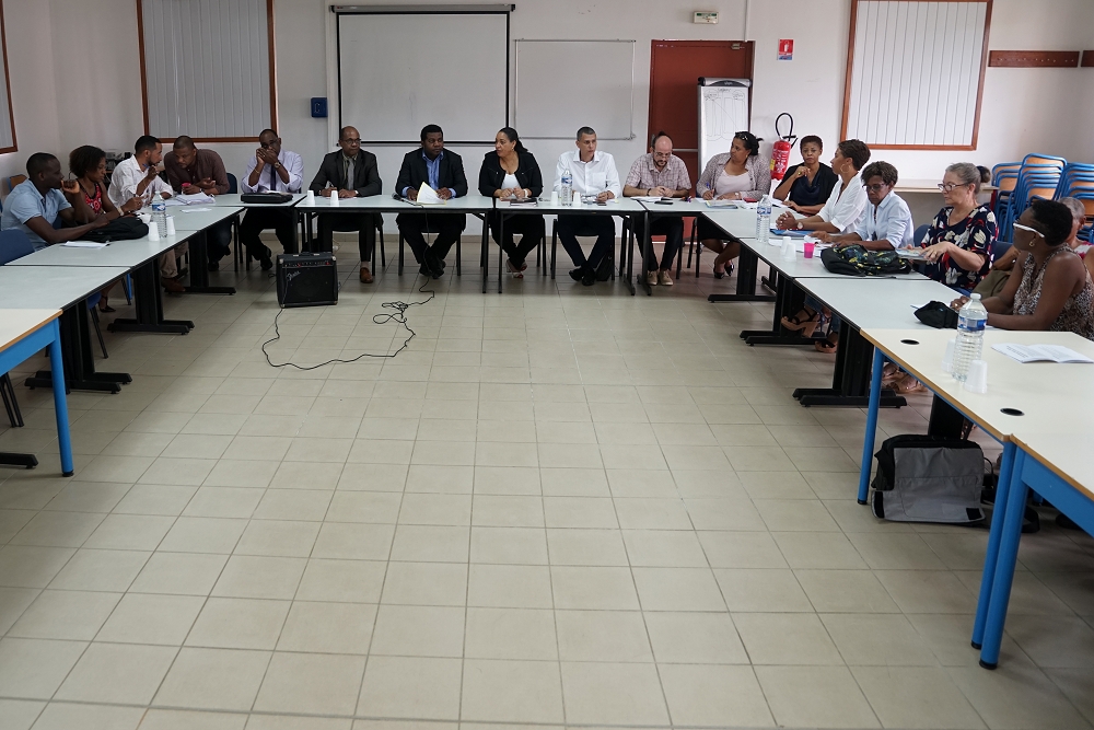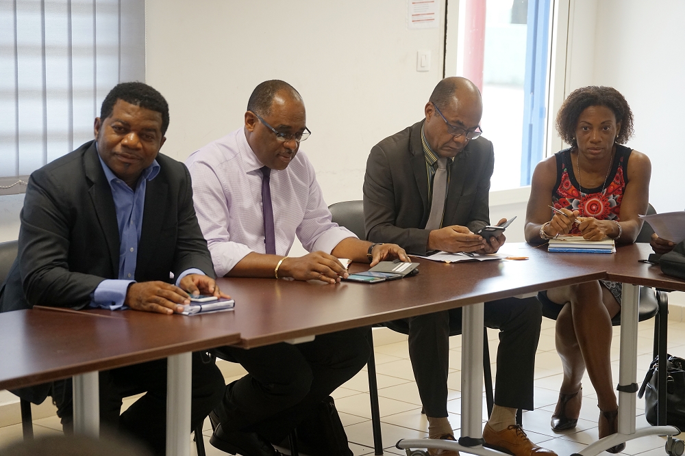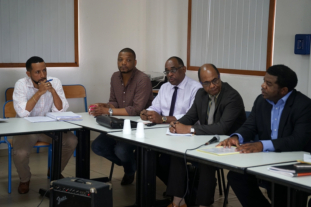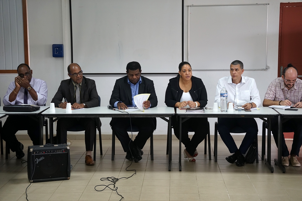 Suite à cette réunion de Comité de Pilotage de Sécurité, une visite d’établissements a été réalisée. En premier lieu ce fut le lycée Michotte, puis la délégation s’est rendue au collège Auxence Contout. Elle est allée à la rencontre du personnel enseignant et administratif, pour échanger sur les modalités opérationnelles à déployer pour lutter contre cette problématique grandissante en Guyane et écouter leurs propositions.