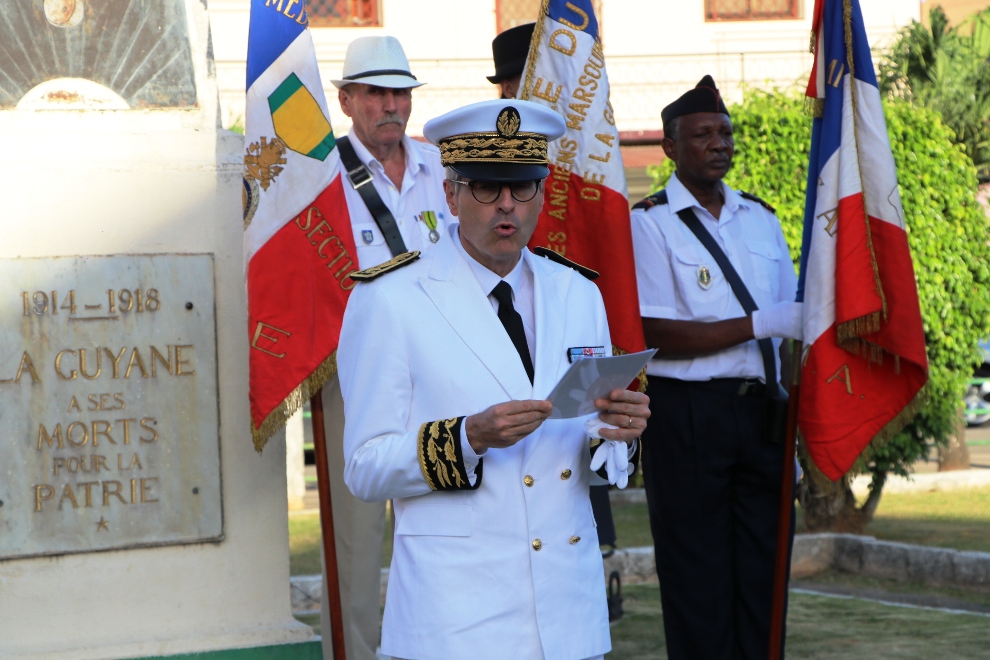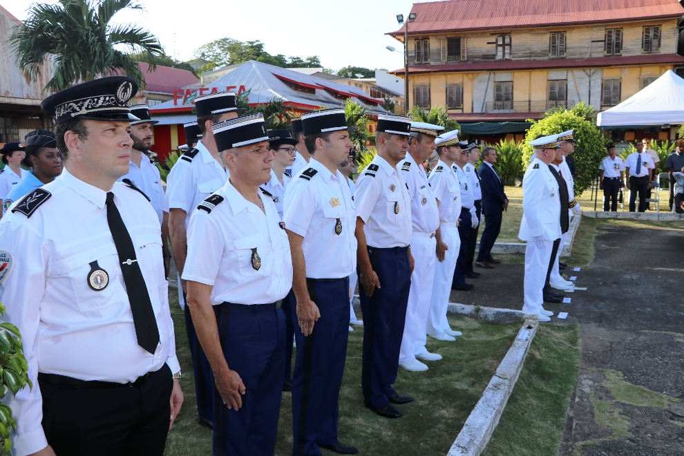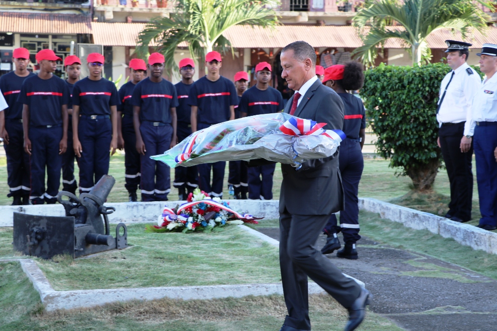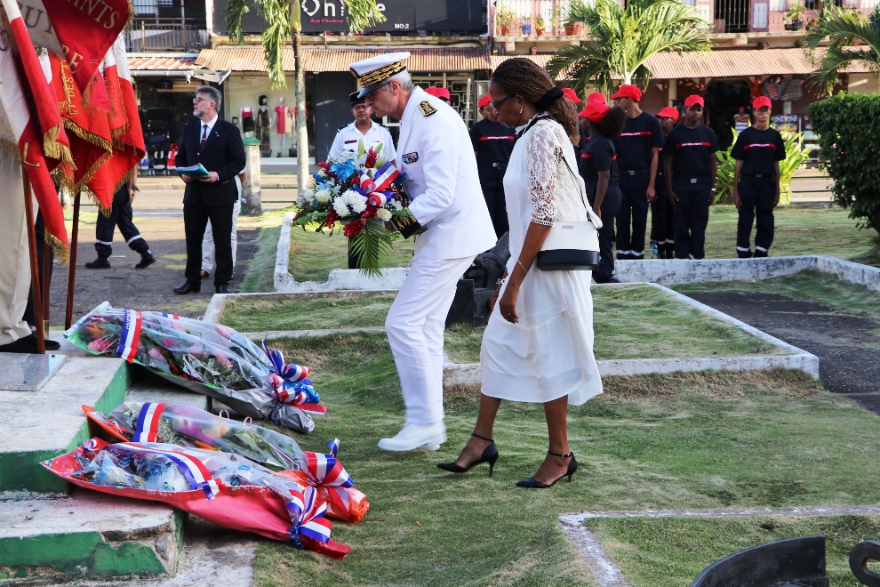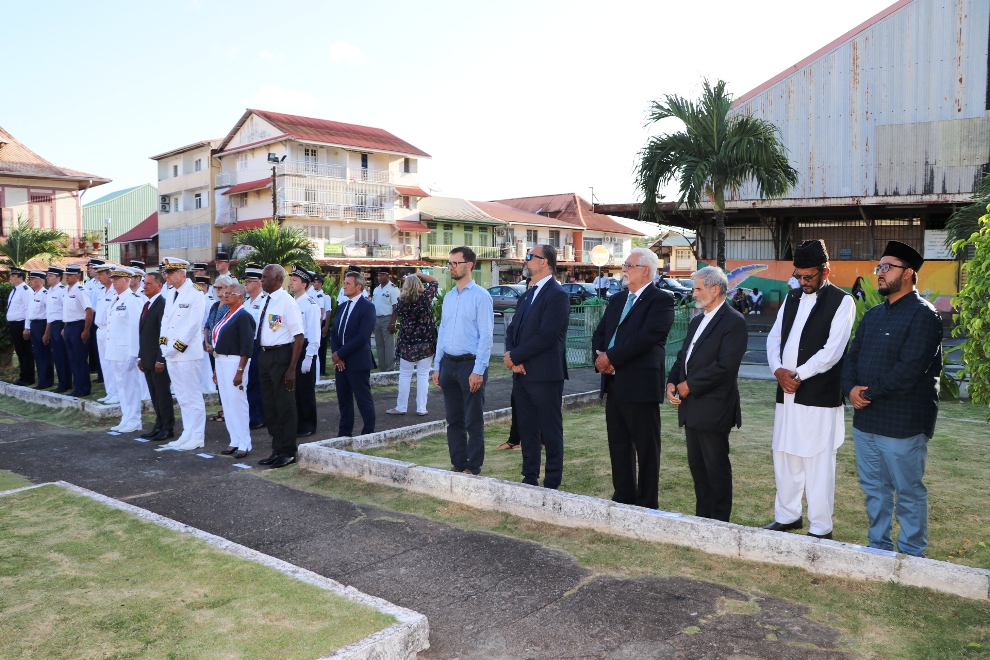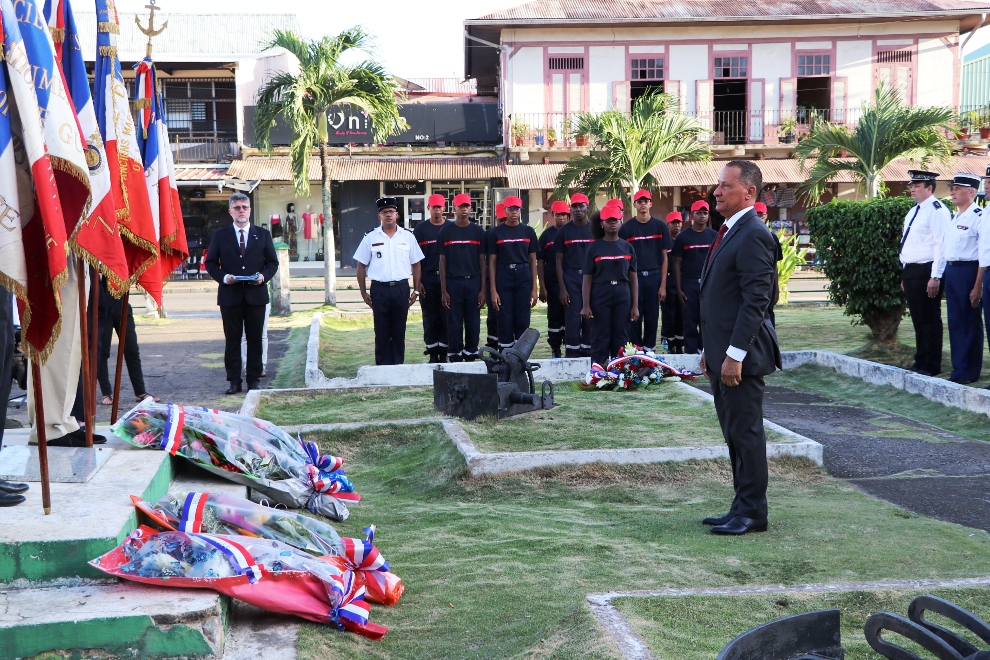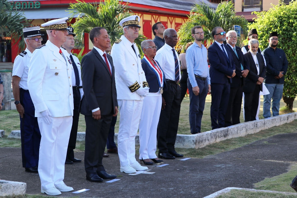 Des élus, représentants institutionnels, forces de l’ordre, sapeurs-pompiers, associations patriotiques étaient également présents à la place du Coq à Cayenne pour cet hommage solennel aux victimes du terrorisme, au monument aux morts, place du Coq à Cayenne.
