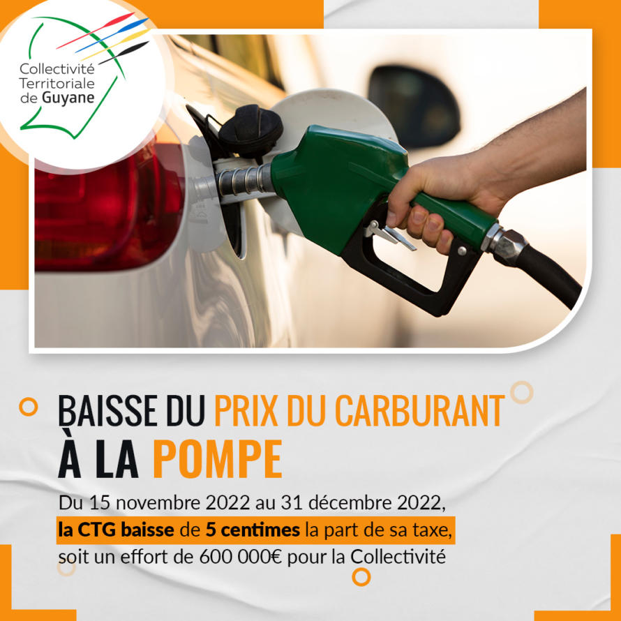 Suite au mouvement général de hausses des prix de l’énergie que subissent les consommateurs guyanais, les élus de l’Assemblée de Guyane ont voté en séance plénière du vendredi 28 octobre 2022 une baisse de la taxe carburant perçue par la Collectivité Territoriale de Guyane (CTG) de 5 centimes €.