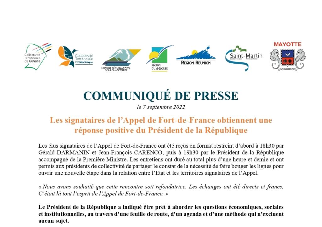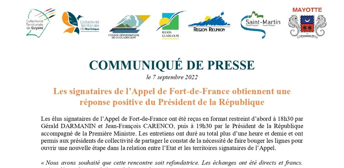 [Communiqué Commun] Les signataires de l’Appel de Fort-de-France obtiennent une réponse positive du Président de la République