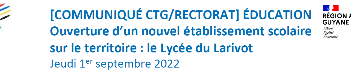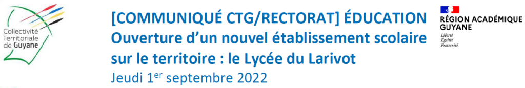[COMMUNIQUÉ CTG/RECTORAT] ÉDUCATION Ouverture d’un nouvel établissement scolaire sur le territoire : le Lycée du Larivot