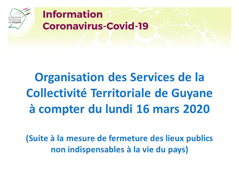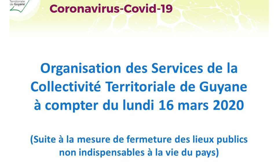 [COMMUNIQUÉ] Organisation des services de la Collectivité Territoriale de Guyane suite à la mesure de fermeture des lieux publics non indispensables à la vie du pays