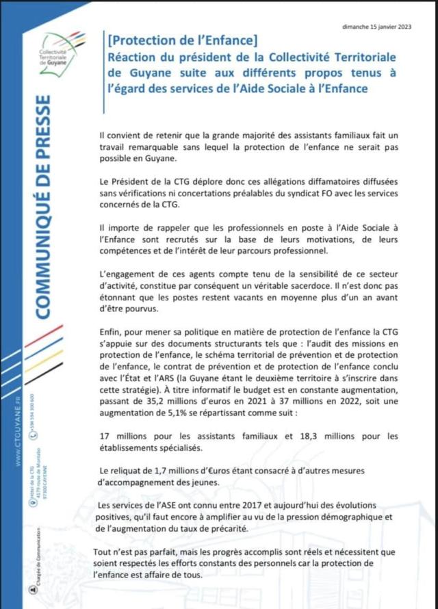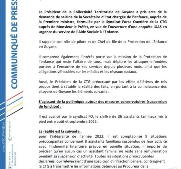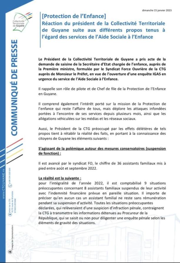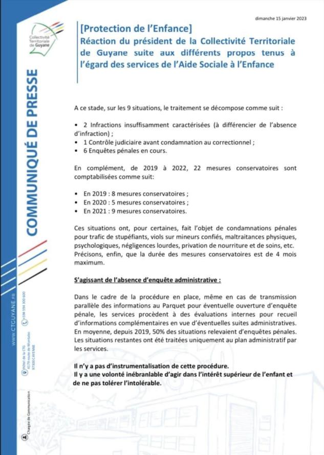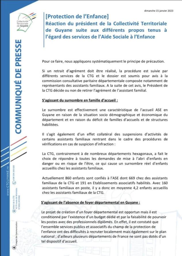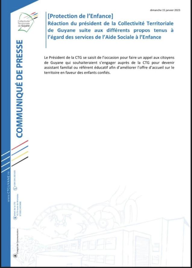 [Communiqué] Protection de l’Enfance : Réaction du président de la Collectivité Territoriale de Guyane suite aux différents propos tenus à l’égard des services de l’Aide Sociale à l’Enfance