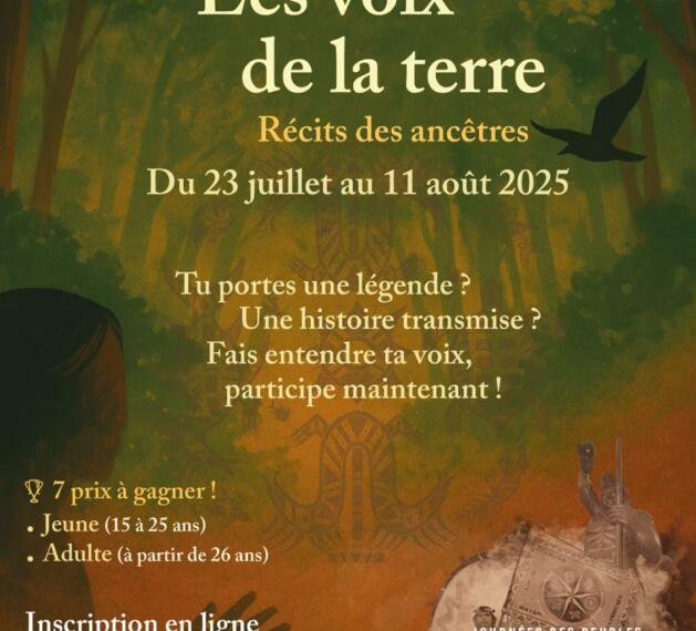 À l’occasion des Journées des Peuples Autochtones, célébrées en août 2025, la Collectivité Territoriale de Guyane organise un concours de conte intitulé : « Les Voix de la Terre : Récits des ancêtres ». Ce concours a pour vocation de faire vivre, transmettre et réinventer les récits issus des cultures autochtones.