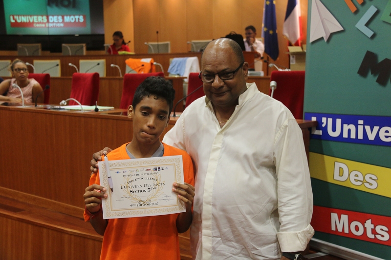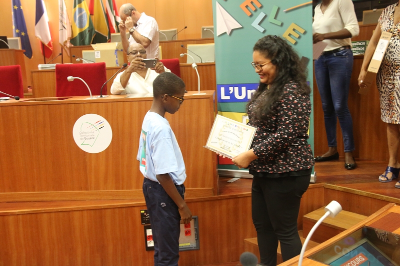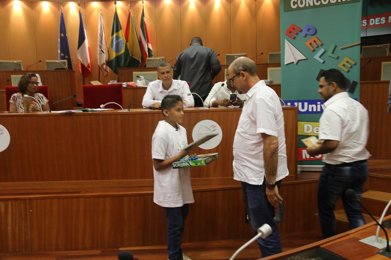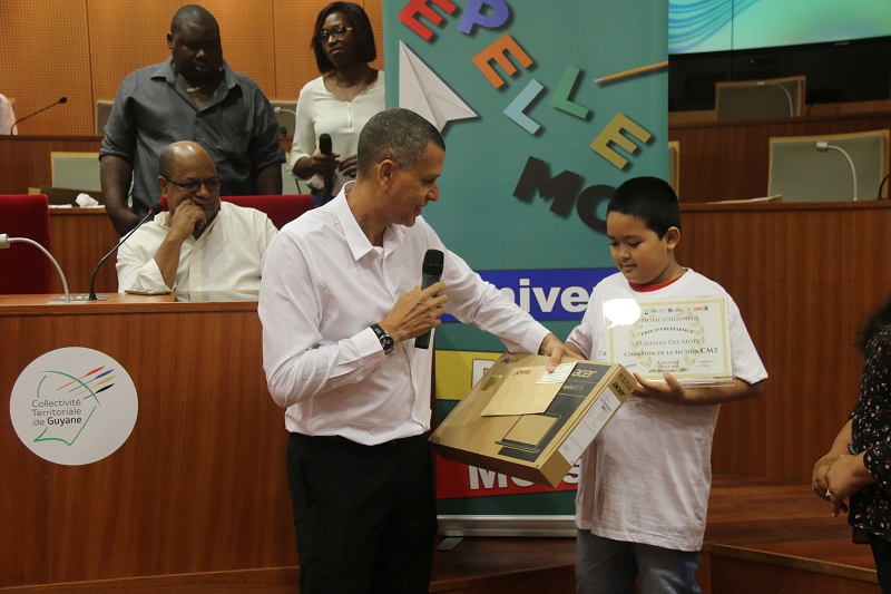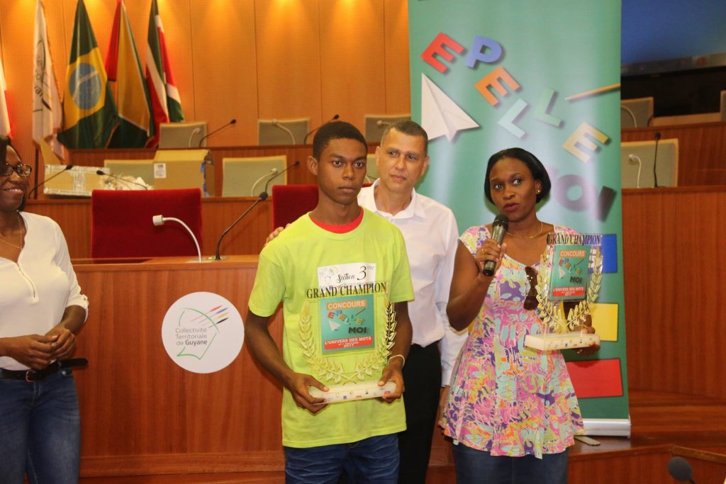 Cette année la première marche du podium revient à Mackenley Egalité, élève de 3ème au collège Antoine Sylvère Félix de Macouria qui se classe champion de la 6ème édition du concours Epelle-moi devant Staël Zenarre , élève de 4ème du collège Gérard Holder et Sarah Asosie, élève de 5ème du collège Reeberg Néron de Rémire-Montjoly qui se hisse sur la 3ème marche du podium.