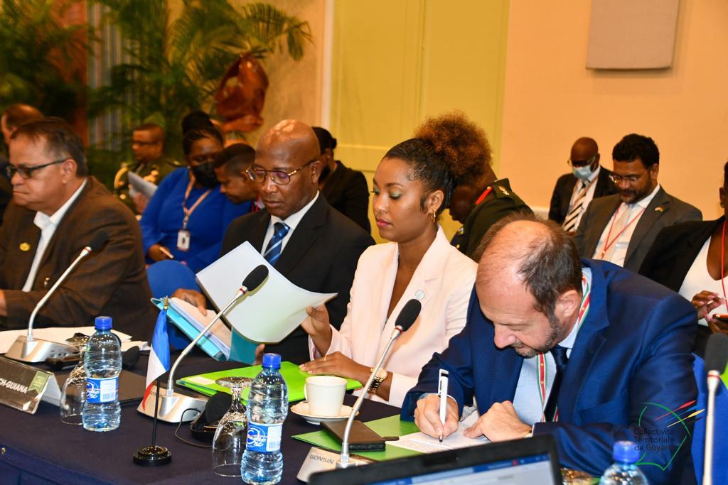 J’espère aussi que nous sortirons de nos échanges d’aujourd’hui et de demain, avec des réponses concrètes à apporter aux artisans pêcheurs qui font face à des exploitations abusives et illégales de nos espaces maritimes. Les eaux qui baignent le plateau des Guyanes sont riches. Mais il est important de défendre la pérennité de cette ressource et de l’exploiter de manière durable, en songeant aux intérêts des générations futures. »