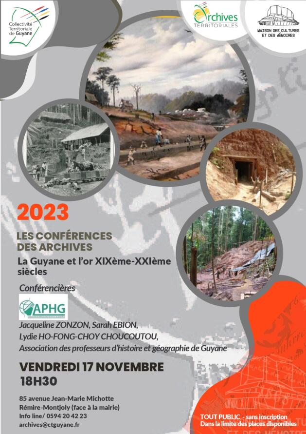 Cette conférences proposée avec la contribution de l’Association des professeurs d’histoire et de géographie de Guyane, à l’origine de l’ouvrage : ” La Guyane et l’or : 1855 à nos jour.”, est gratuite et ouverte à tous.